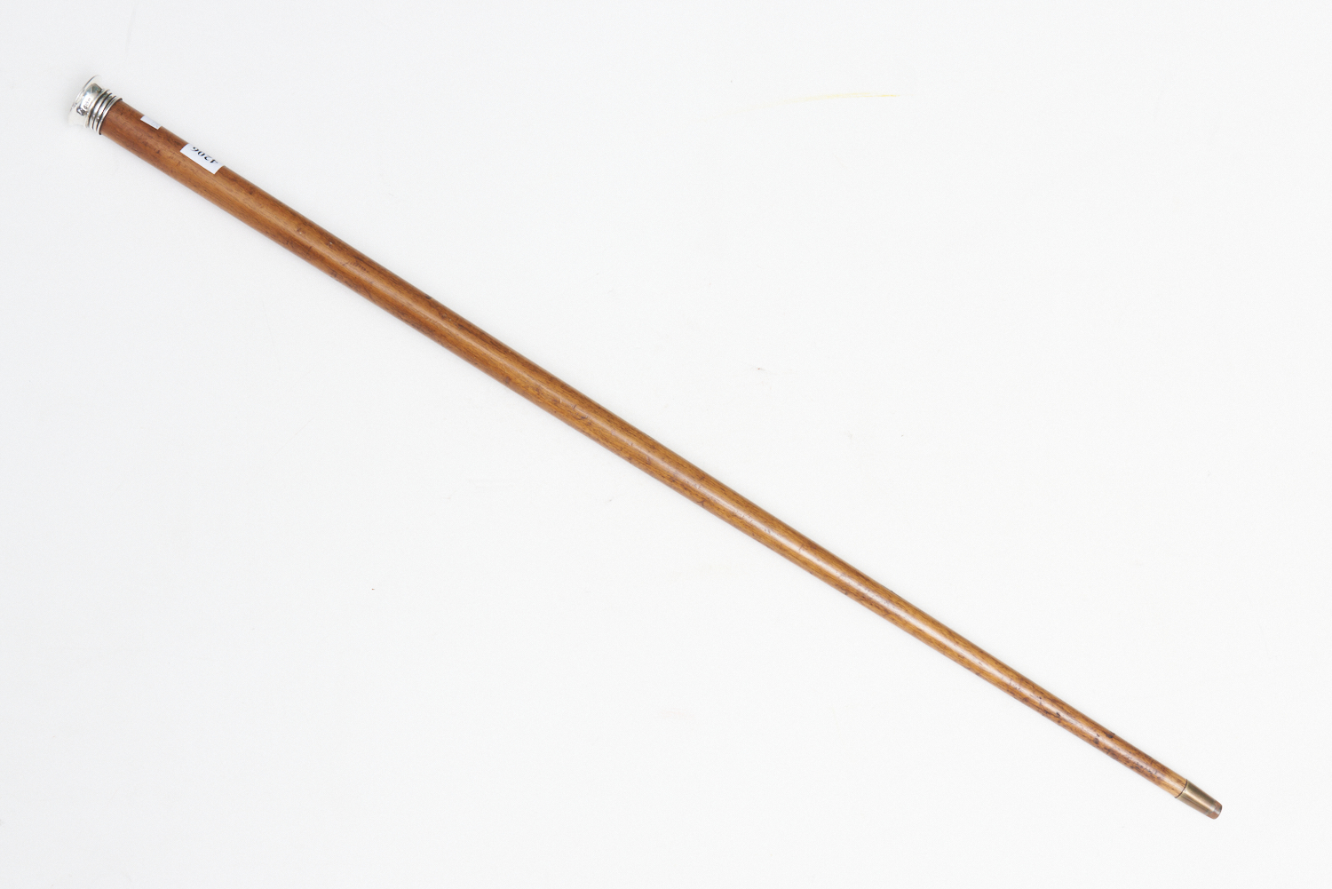 AN ENGLISH STERLING SILVER AND ENAMEL TOPPED WALKING STICK WITH BLACKWOOD SHAFT, L.83CM, LEONARD JOEL LOCAL DELIVERY SIZE: SMALL