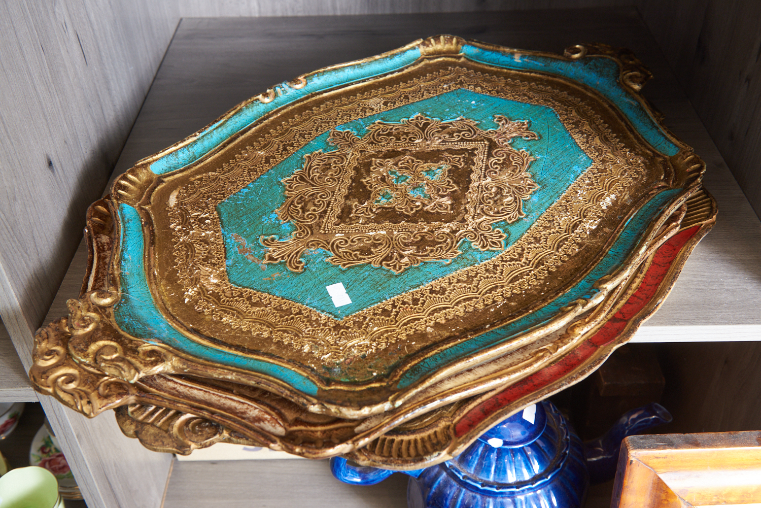 THREE LARGE FLORENTINE GILTWOOD SERVING TRAYS, LEONARD JOEL LOCAL DELIVERY SIZE: SMALL