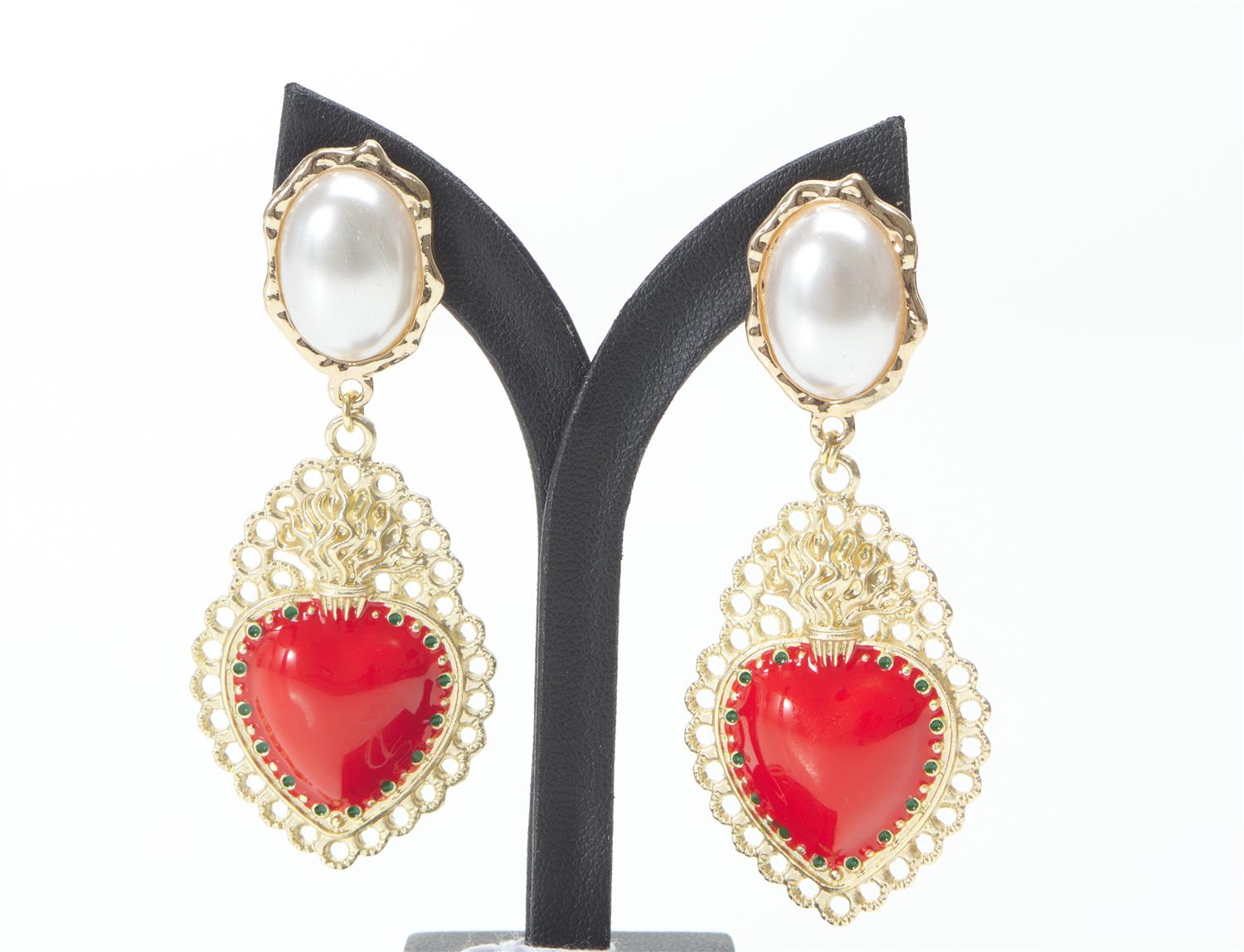 A PAIR OF HEART DESIGN COSTUME JEWELLERY, TO POST AND BUTTERFLY FITTINGS, TOTAL LENGTH 65MM