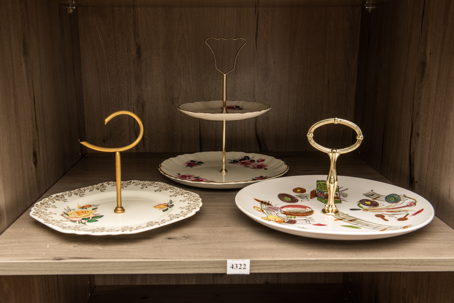 A GROUP OF THREE CAKE STANDS, LEONARD JOEL LOCAL DELIVERY SIZE: SMALL