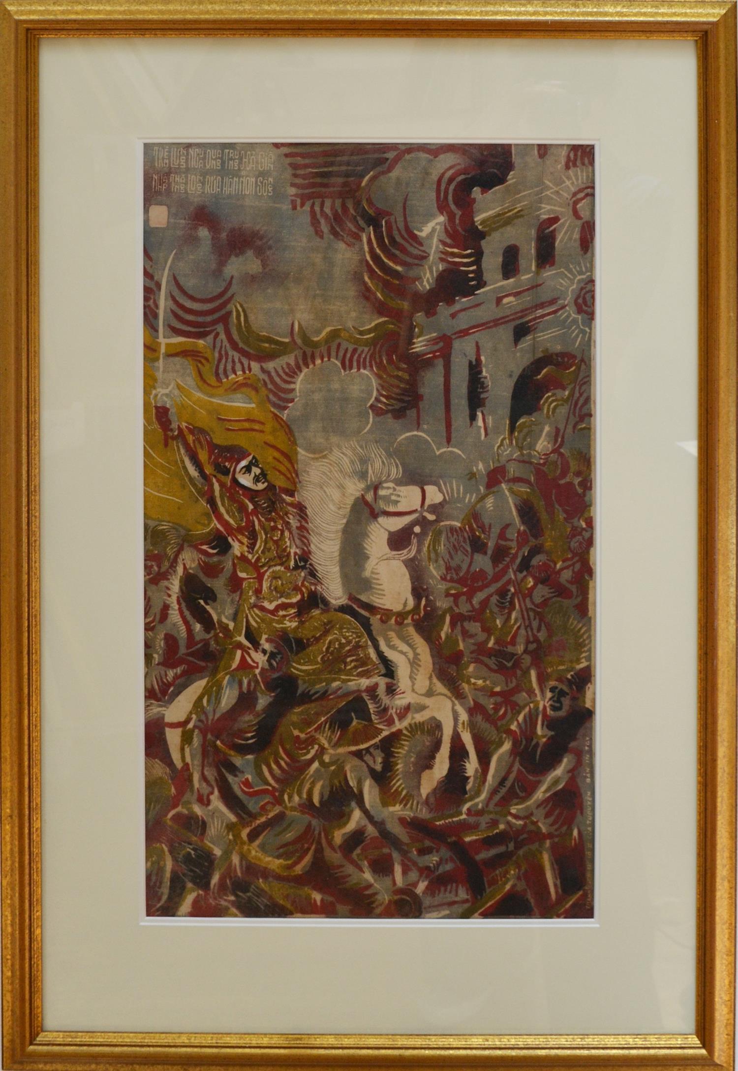 TU DUYEN, UNTITLED, WOODBLOCK ON SILK, 62 X 36CM, FRAME SIZE: 87 X 59CM, LEONARD JOEL DELIVERY SIZE: MEDIUM