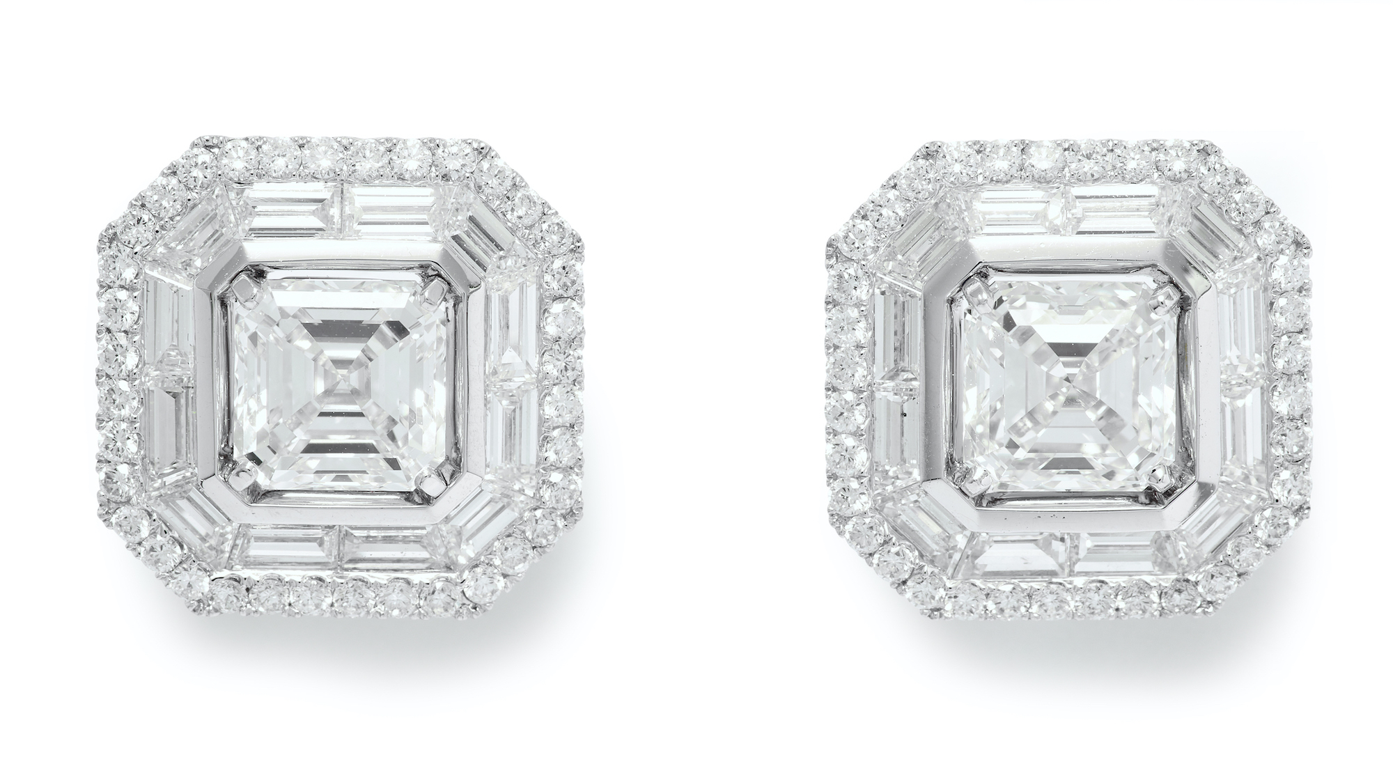 PAIR OF 18CT WHITE GOLD AND DIAMOND EARRINGS Accompanied by: a GIA report numbered 2135642365, dated 6 July 2020, stating that the 5...