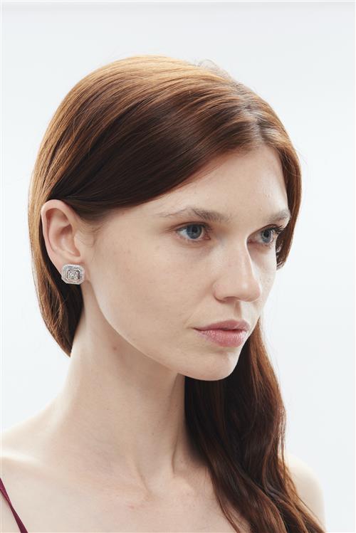 Each of cluster design, centring a cut-cornered rectangular modified brilliant diamond weighing approximately 2.01 carats and 2.02 carats respectively, claw-set within an openwork surround decorated with baguette diamonds, further framed to the outside by a line of claw-set brilliant-cut diamonds, the small diamonds together weighing approximately 2.93 carats, length approximately 16mm, post fittings.