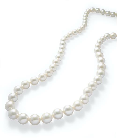 Composed of 125 cultured pearls graduating from approximately 13.00mm-16.00mm, completed by an 18ct white gold openwork ball clasp decorated at intervals with brilliant-cut diamonds together weighing approximately 0.04 carat, circumference approximately 1880mm.