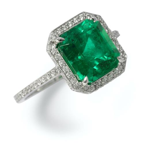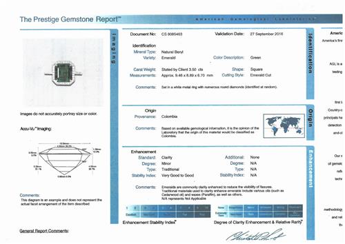 Accompanied by an AGL report numbered CS 8085463, dated 27 September 2016, stating that the 3.50 emerald is natural, and of Colombian origin.