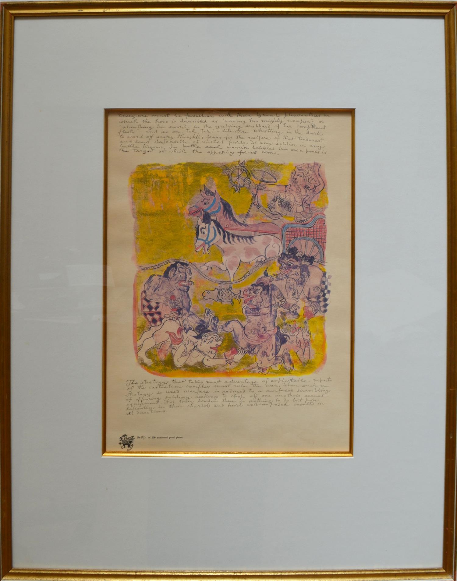 LIGHT FOXING SPOTS SEEN, HAIRLINE CREASES. WELL FRAMED.