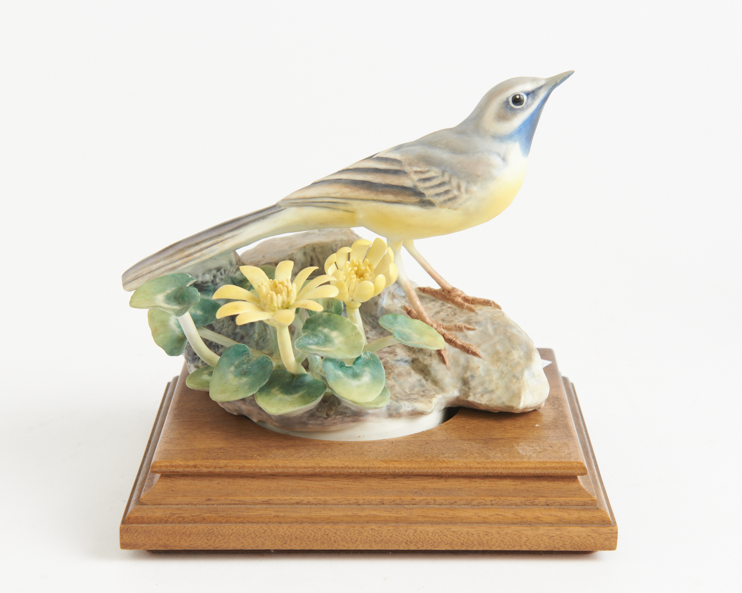 A RARE ROYAL WORCESTER 'DOUGHTY BIRD' PORCELAIN MODEL OF A GREY WAGTAIL (MOTACILLA MELANOPE AND CELANDINE), DESIGNED BY DOROTHY DOUGHTY, 16 CM HIGH, LEONARD JOEL LOCAL DELIVERY SIZE: SMALL