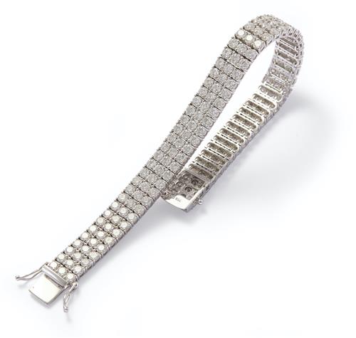 Composed of three lines of claw-set brilliant diamonds, the diamonds together weighing approximately 16.03 carats, length approximately 180mm.