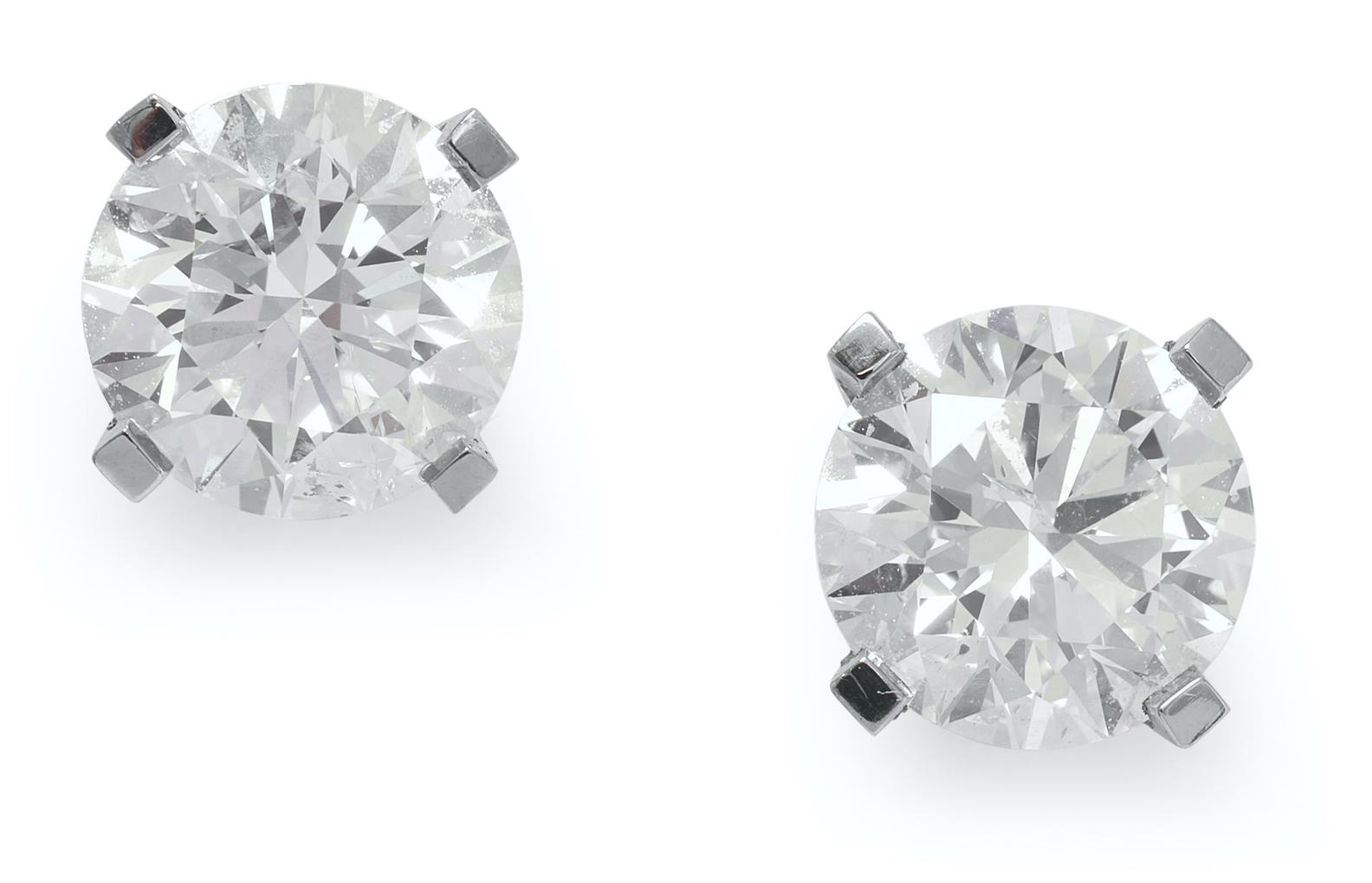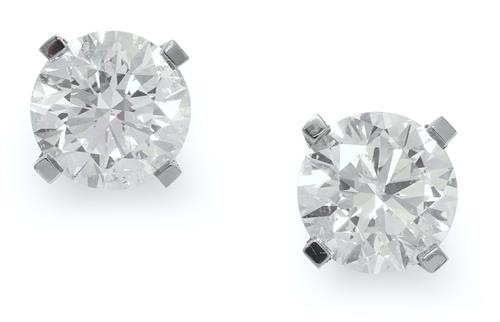 The brilliant diamonds, weighing 1.51 and 1.53 carats each, are claw-set, post fittings.