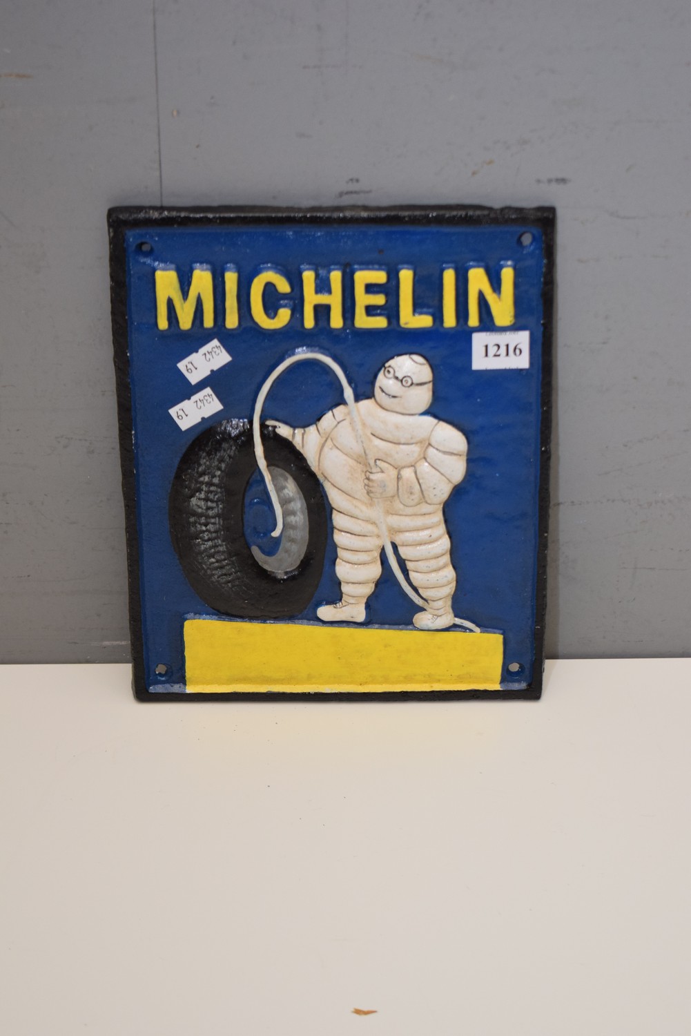 A MICHELIN MAN METAL PLAQUE (24H x 20W CM) (LEONARD JOEL DELIVERY SIZE: SMALL)