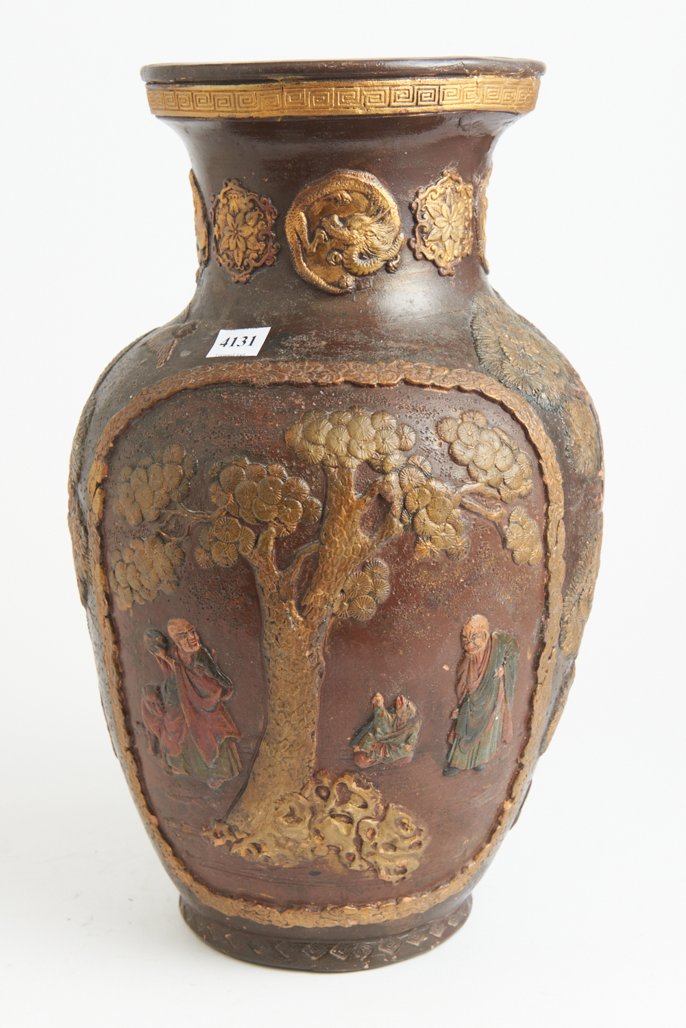A SIGNED AND MOULDED JAPANESE POTTERY VASE, H.41CM, LEONARD JOEL LOCAL DELIVERY SIZE: SMALL