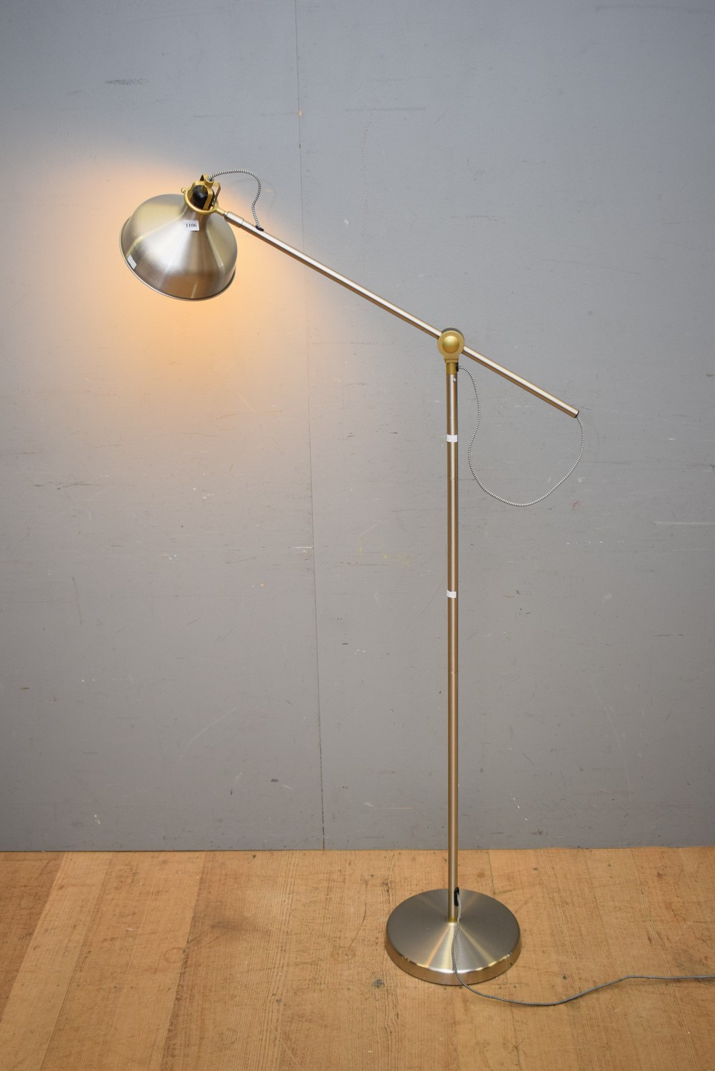 AN INDUSTRIAL STYLE NRUSHED METAL FLOOR LAMP (ADJUSTABLE HEIGHT 152 CM) (LEONARD JOEL DELIVERY SIZE: MEDIUM)