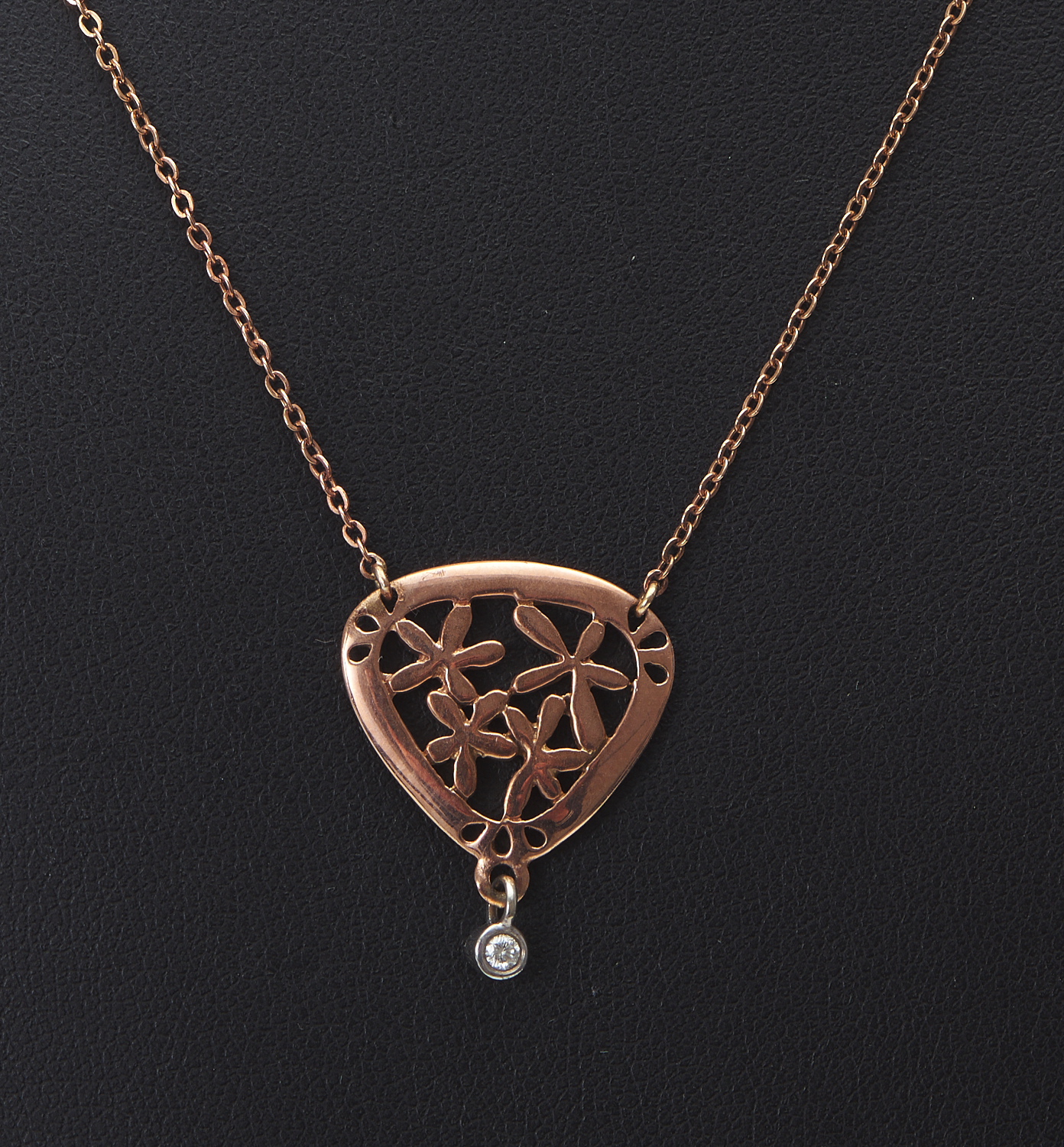 A DIAMOND PENDANT AND CHAIN IN 9CT ROSE GOLD, LENGTH 24.5MM, 3.4GMS