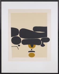 There are two creases found in the centre of the work, on the black pigment, measuring approx. 2cm each. Well framed with some minor wear.