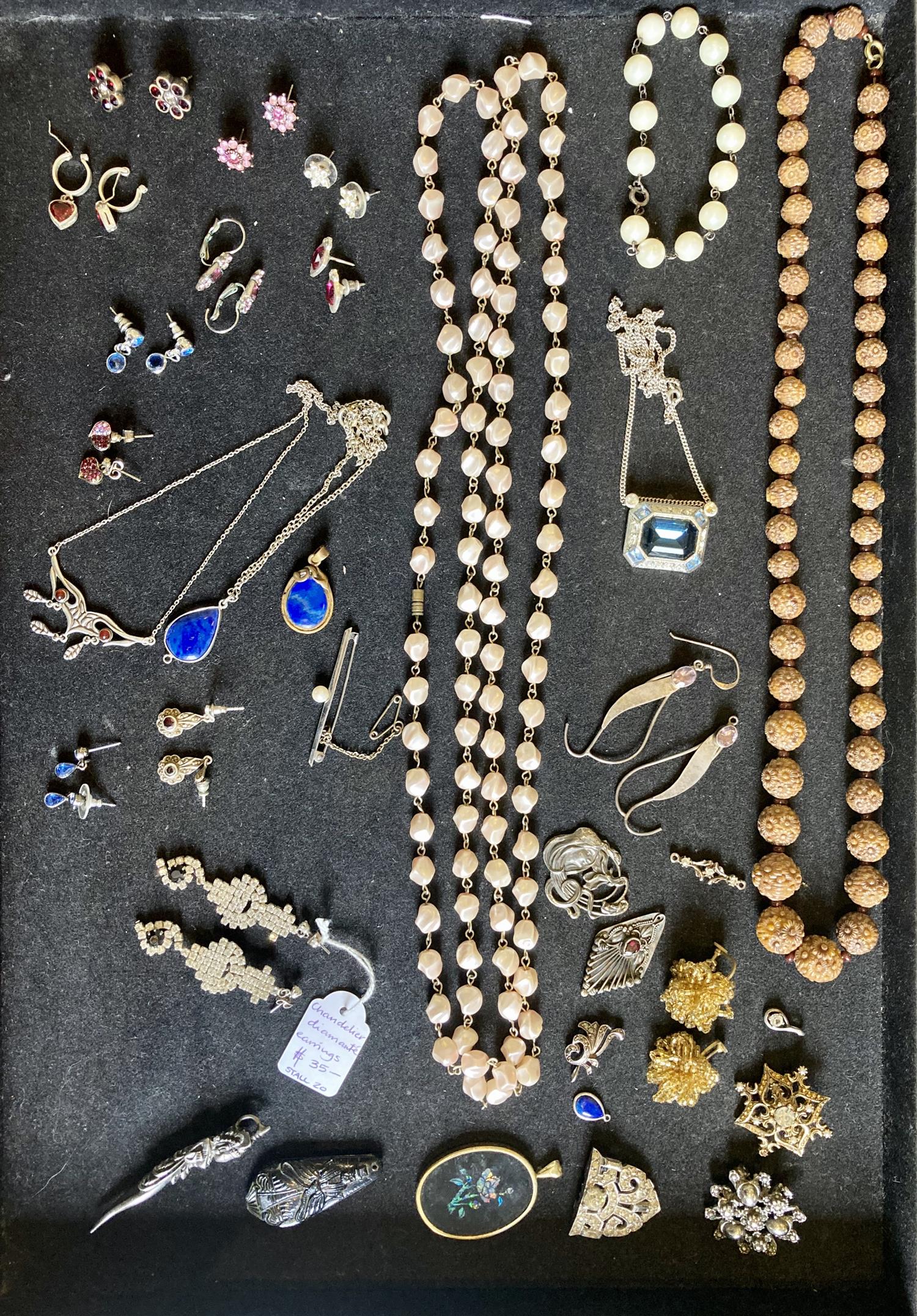 A COLLECTION OF JEWELLERY INCLUDING VINTAGE PASTE SET, FAUX PEARL, STERLING SILVER, AMETHYST AND SODALITE