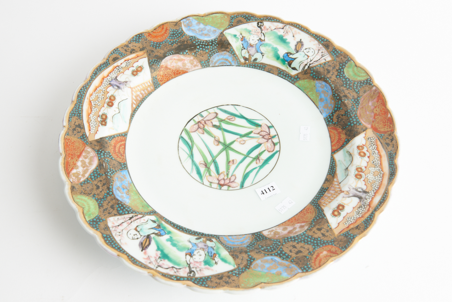 A JAPANESE ARITA CHARGER WITH COLOURFUL LANDSCAPE SCENE SIGNED ON BACK, 40 CM DIAMETER, LEONARD JOEL LOCAL DELIVERY SIZE: SMALL