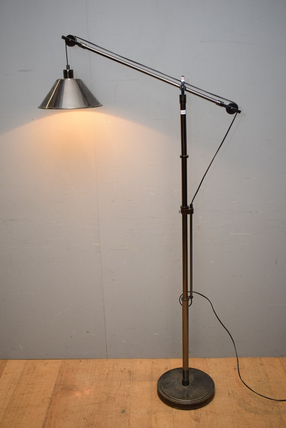 A TALL CONTEMPORARY BLACK CHROME FLOOR LAMP (181H CM) (LEONARD JOEL DELIVERY SIZE: MEDIUM)