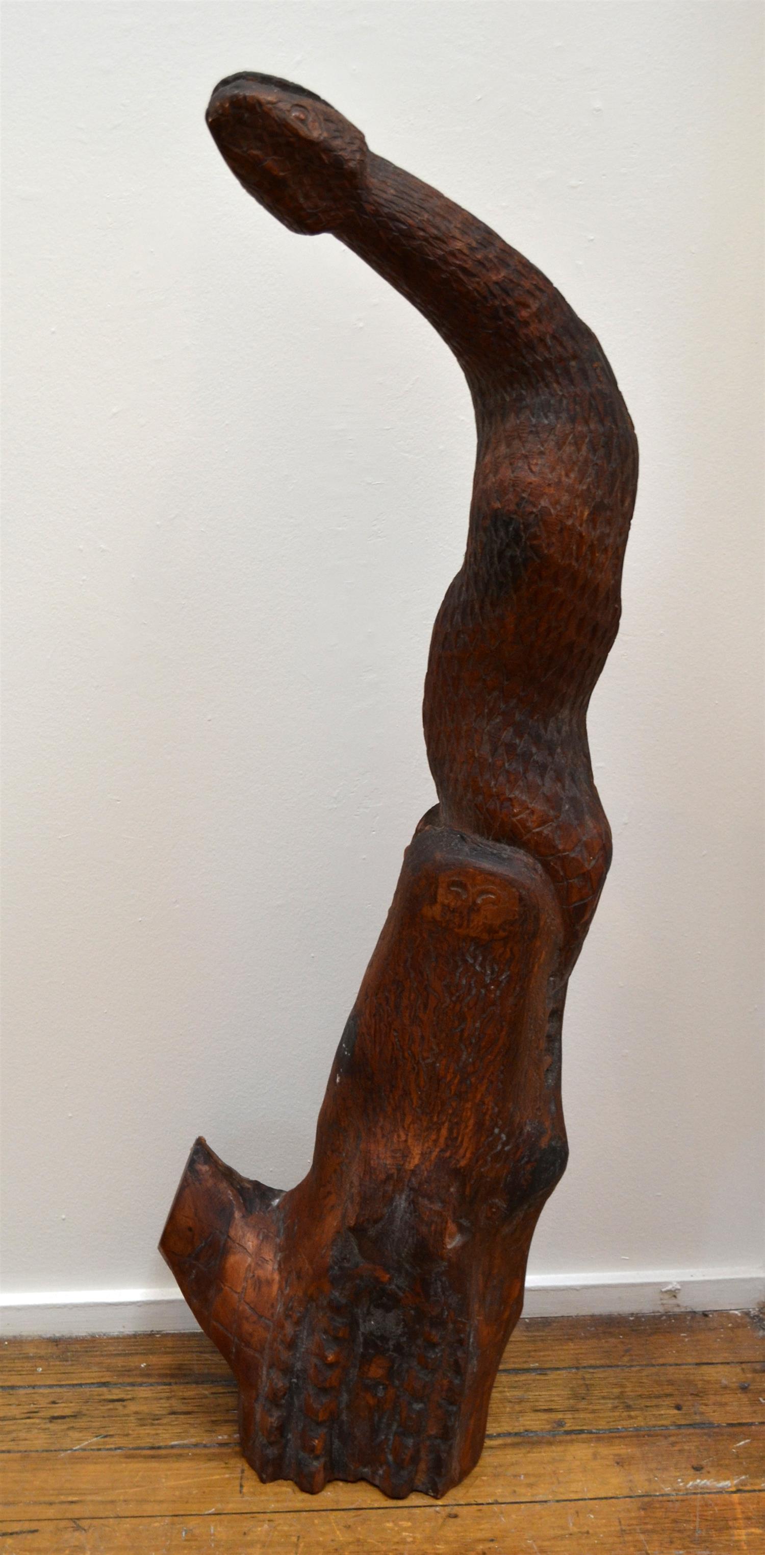 ATTRIBUTED TO LOWELL MOSLEY, ALLIGATOR EATING ANACONDA, CARVED WOOD, 150CM (height), LEONARD JOEL DELIVERY SIZE: LARGE