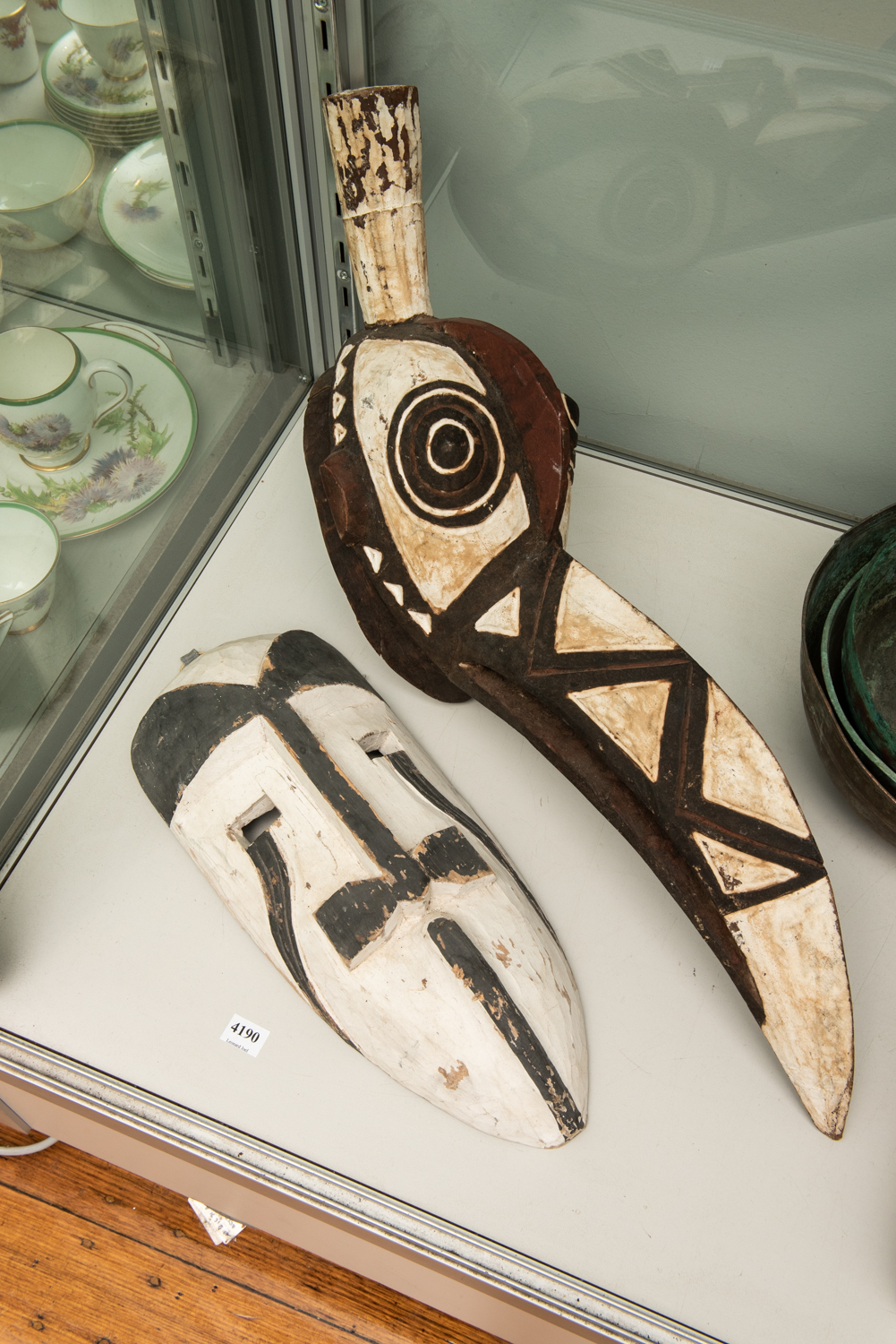 TWO AFRICAN MASKS, H.63CM AND 42CM, LEONARD JOEL LOCAL DELIVERY SIZE: SMALL