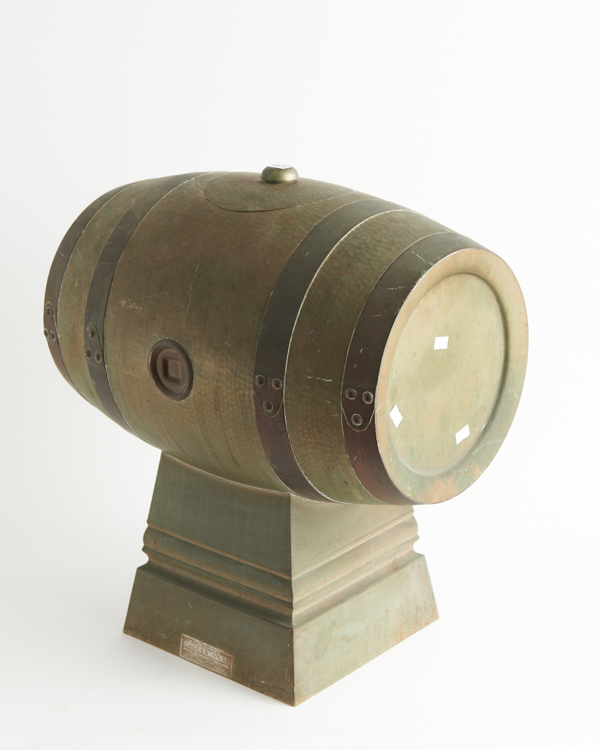 A HAMMERED COPPER BARRELL, 45 CM WIDE, 53 CM HIGH, LEONARD JOEL LOCAL DELIVERY SIZE: MEDIUM
