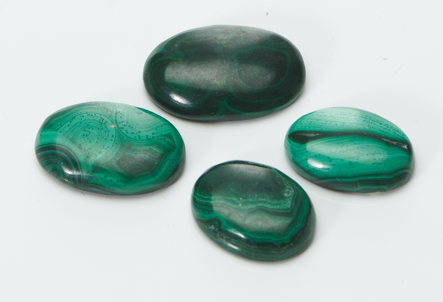 A FOUR PIECES OF MALACHITE, CUT EN CABOCHON