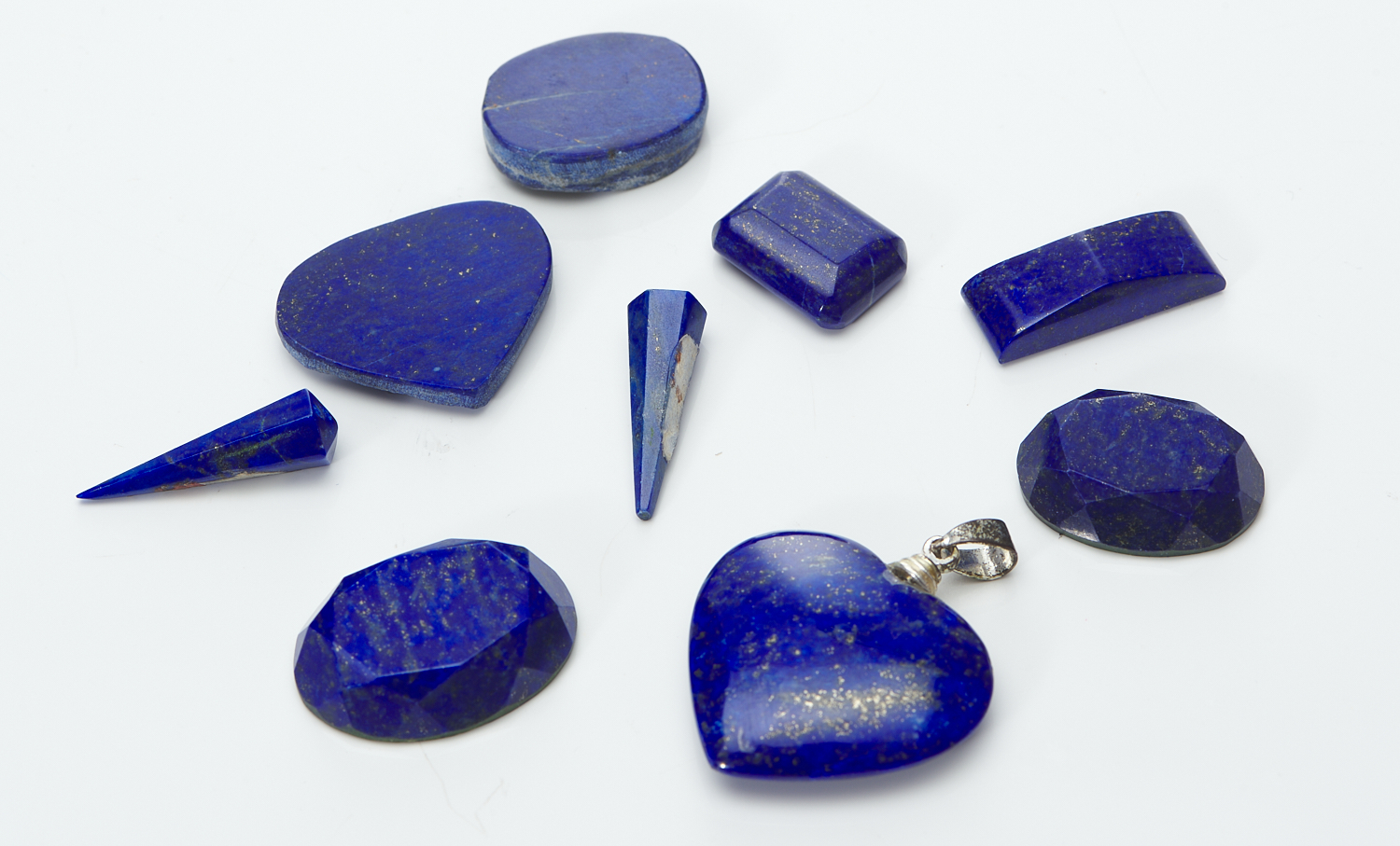 A COLLECTION OF LOOSE LAPIS LAZULI, INCLUDING A HEART SHAPED PENDANT