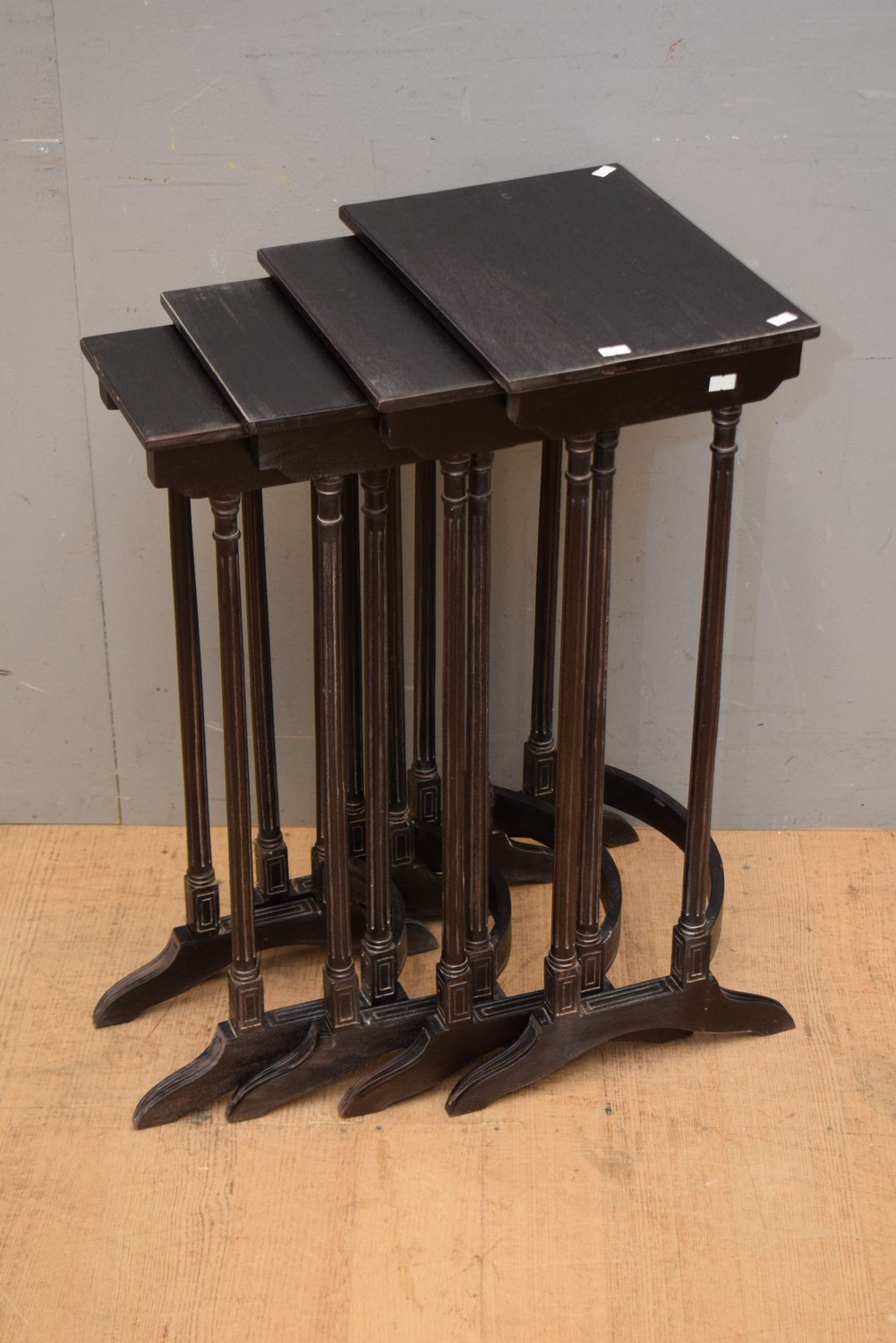 A SET OF FOUR NESTING TABLES WITH COLUMN DETAILING (A/F) (LARGEST 72H x 37W x 26D CM) (LEONARD JOEL DELIVERY SIZE: SMALL)