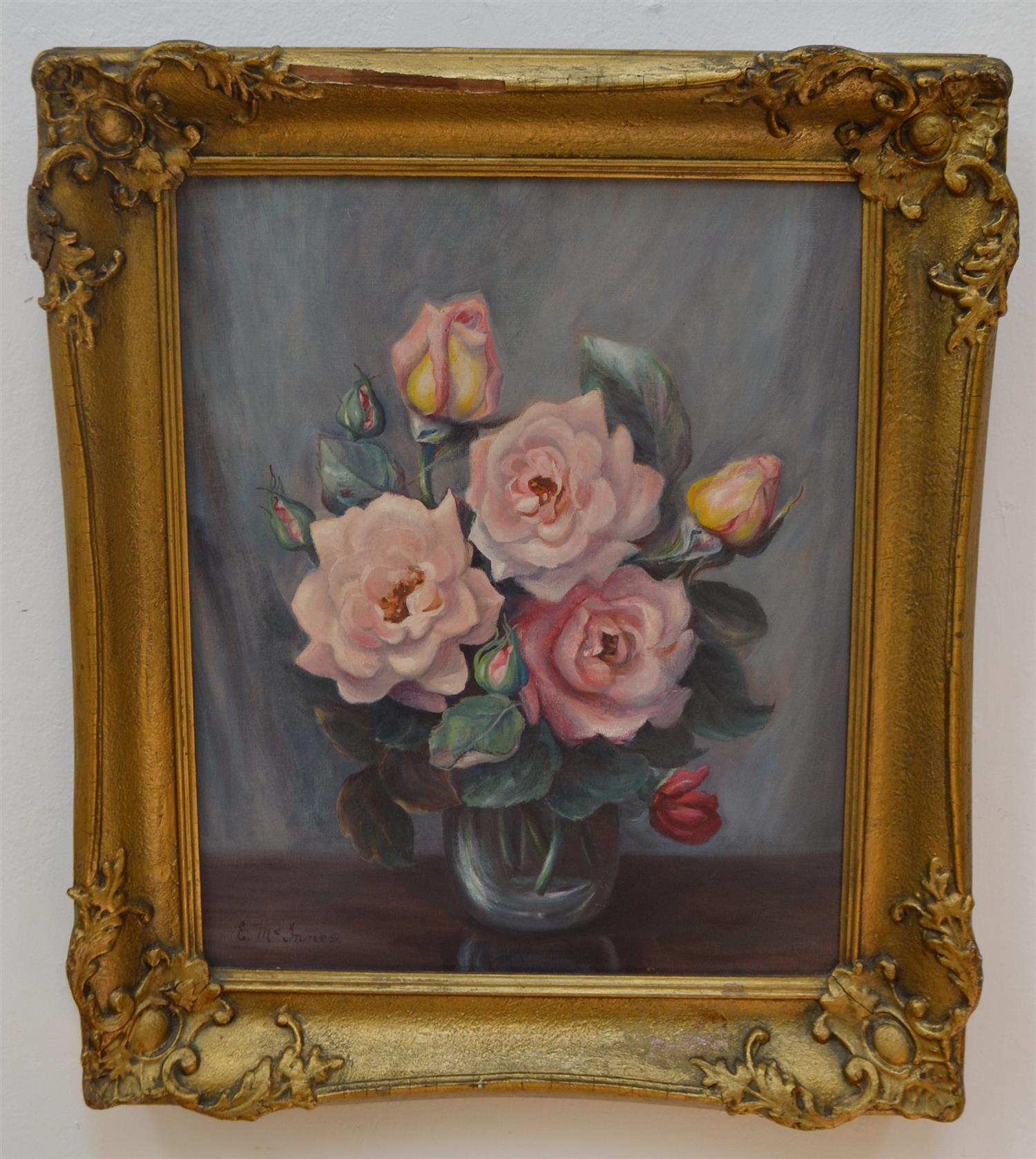 ETHELWYN MCINNES, STILL LIFE, OIL ON CANVASBOARD, 44 X 36CM, CONDITION: VERY GOOD, FRAME SIZE: 58 X 51CM, LEONARD JOEL DELIVERY SIZE: MEDIUM