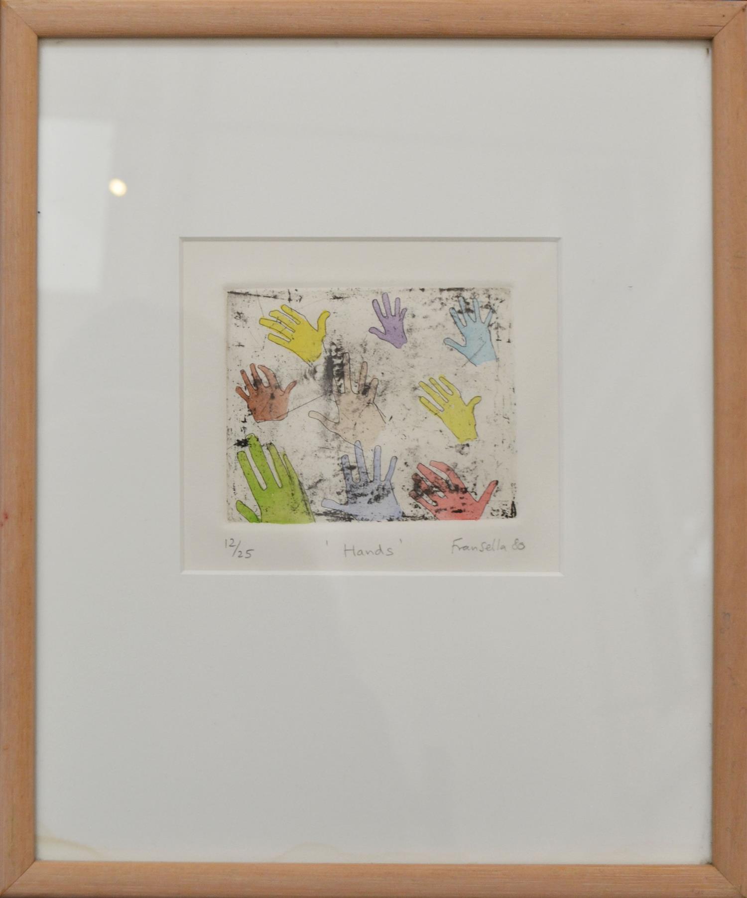 GRAHAM FRANSELLA, HANDS 1986, ETCHING 12/25, 8 X 9.5CM, FRAME SIZE: 30 X 25CM, CONDITION: VERY GOOD, LEONARD JOEL DELIVERY SIZE: SMALL