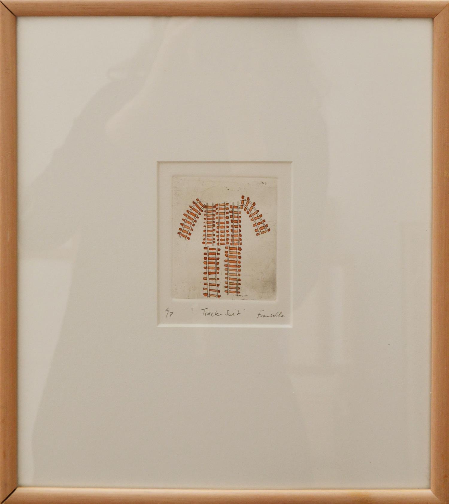 GRAHAM FRANSELLA, TRACK-SUIT, ETCHING A/P, 8.5 X 7CM, FRAME SIZE: 35 X 31CM, CONDITION: VERY GOOD, LEONARD JOEL DELIVERY SIZE: SMALL