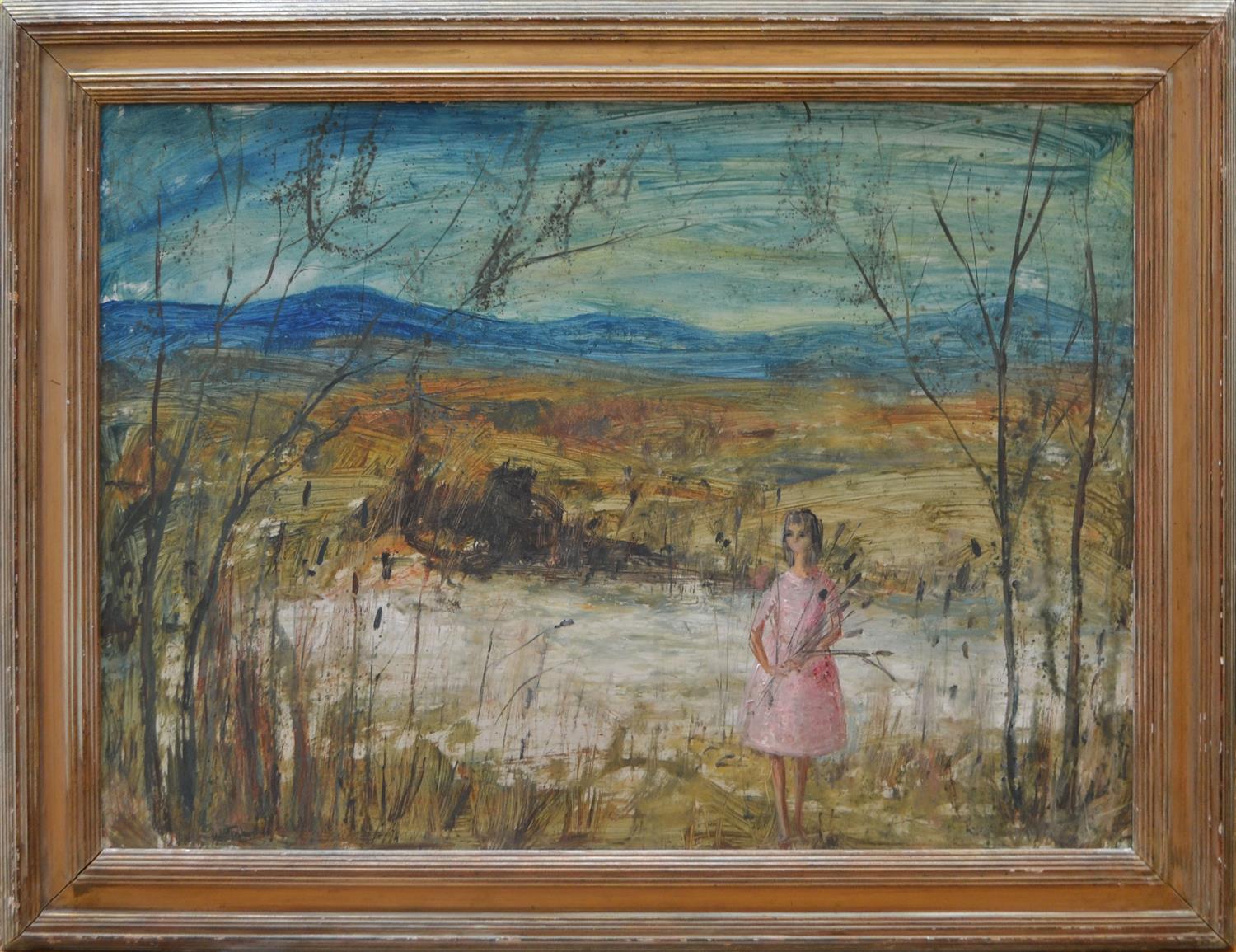 PHYL WATERHOUSE, THE BUSH GATHERER, OIL ON BOARD, 65 X 90CM, FRAME SIZE: 85 X 108CM,