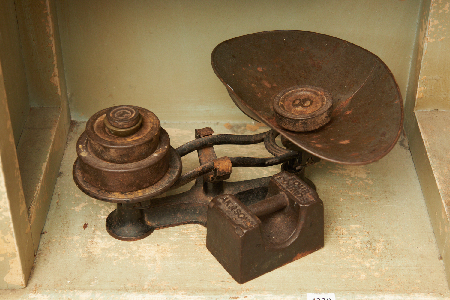 VINTAGE SCALES WITH ASSORTED WEIGHTS, LEONARD JOEL LOCAL DELIVERY SIZE: SMALL