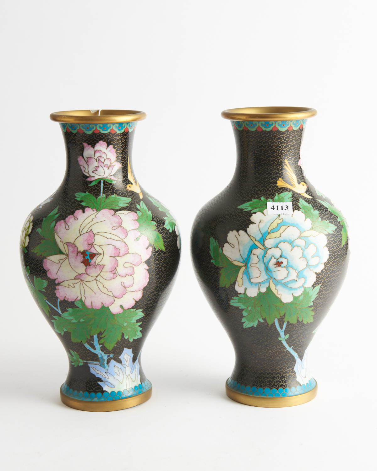 TWO CLOISSONE VASES, 31 CM HIGH, LEONARD JOEL LOCAL DELIVERY SIZE: SMALL