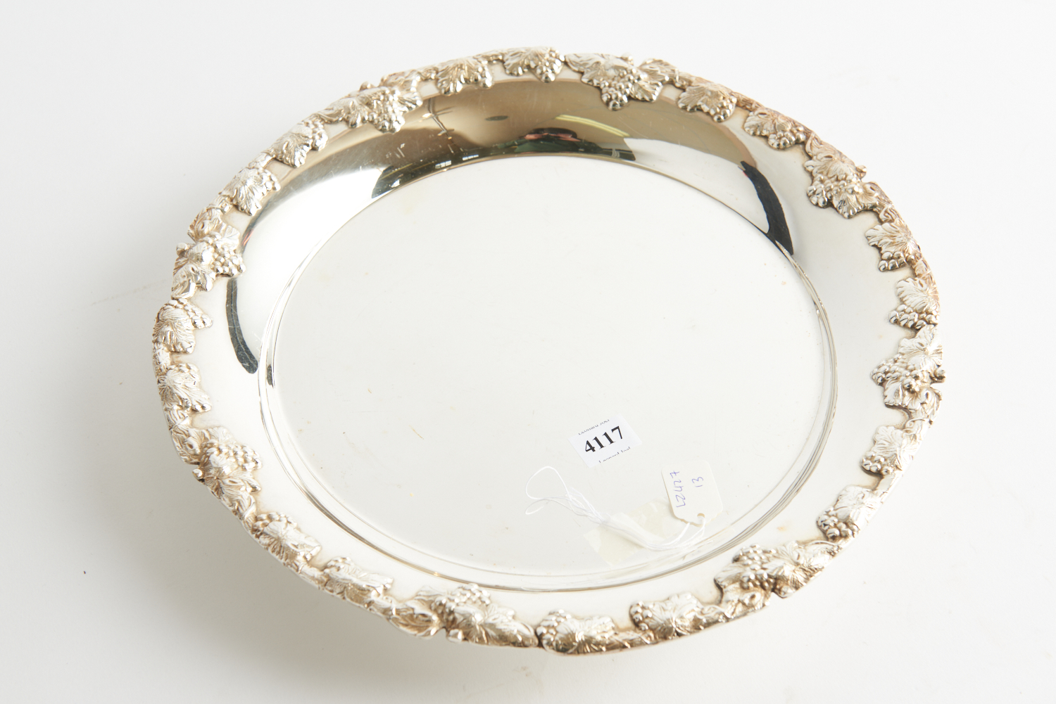 A SILVER PLATED CIRCULAR TRAY, 32 CM DIAMETER, LEONARD JOEL LOCAL DELIVERY SIZE: SMALL