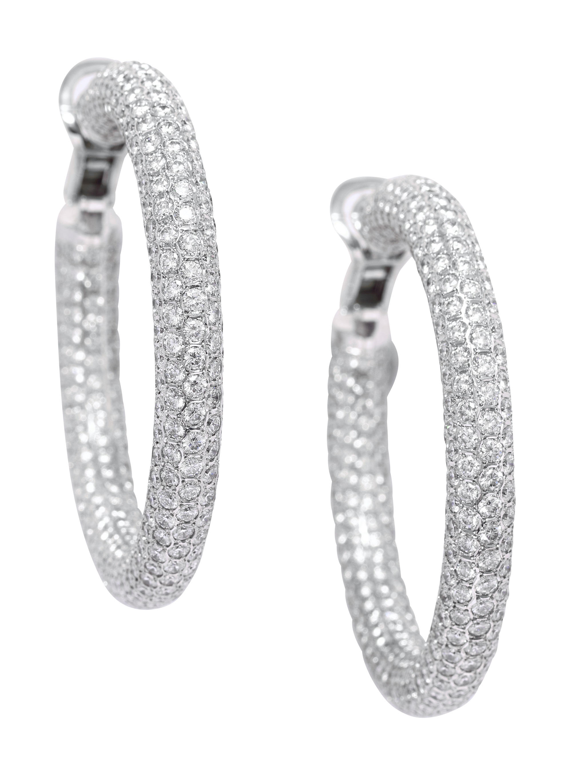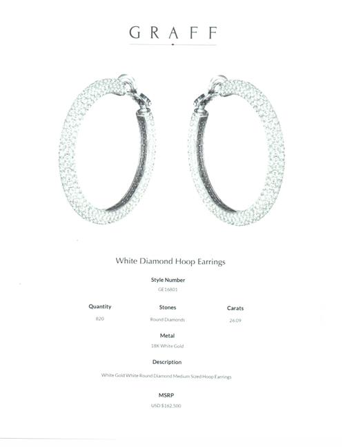 Each designed as a 6mm wide circular hoop pavé-set to the front and inside with brilliant-cut diamonds together weighing approximately 26.09 carats, length approximately 50mm, signed Graff, numbered, post and clip fittings.