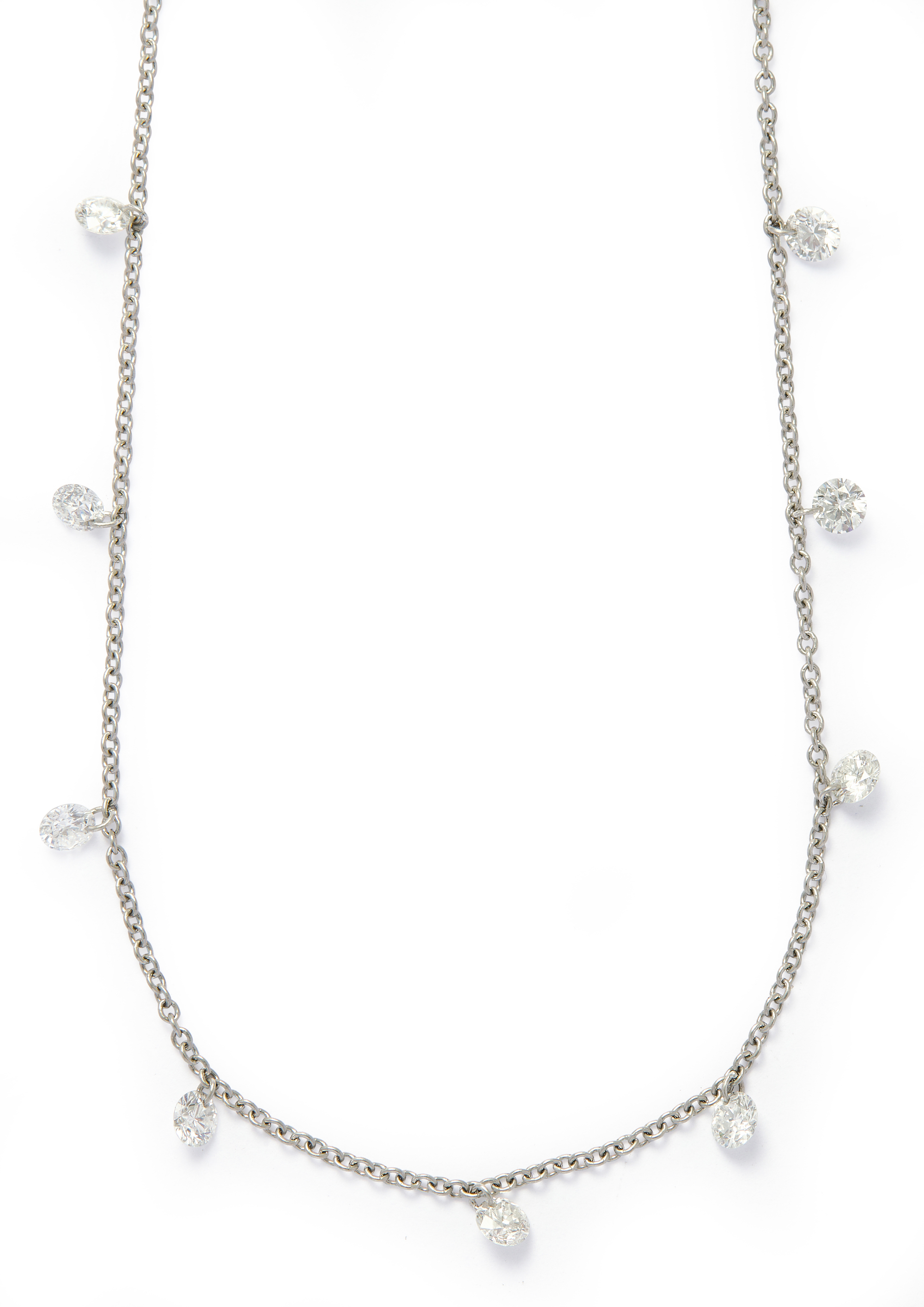 Designed as a fine trace chain suspending at intervals 19 brilliant-cut diamonds together weighing approximately 1.47 carats, circumference approximately 215mm, lobster clasp, adjustable.