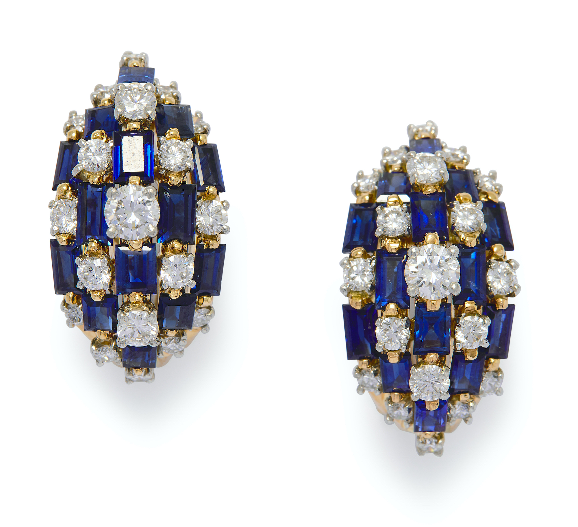 PAIR OF 18CT GOLD, SAPPHIRE AND DIAMOND EARRINGS, OSCAR HEYMAN & BROTHERS