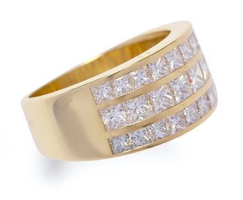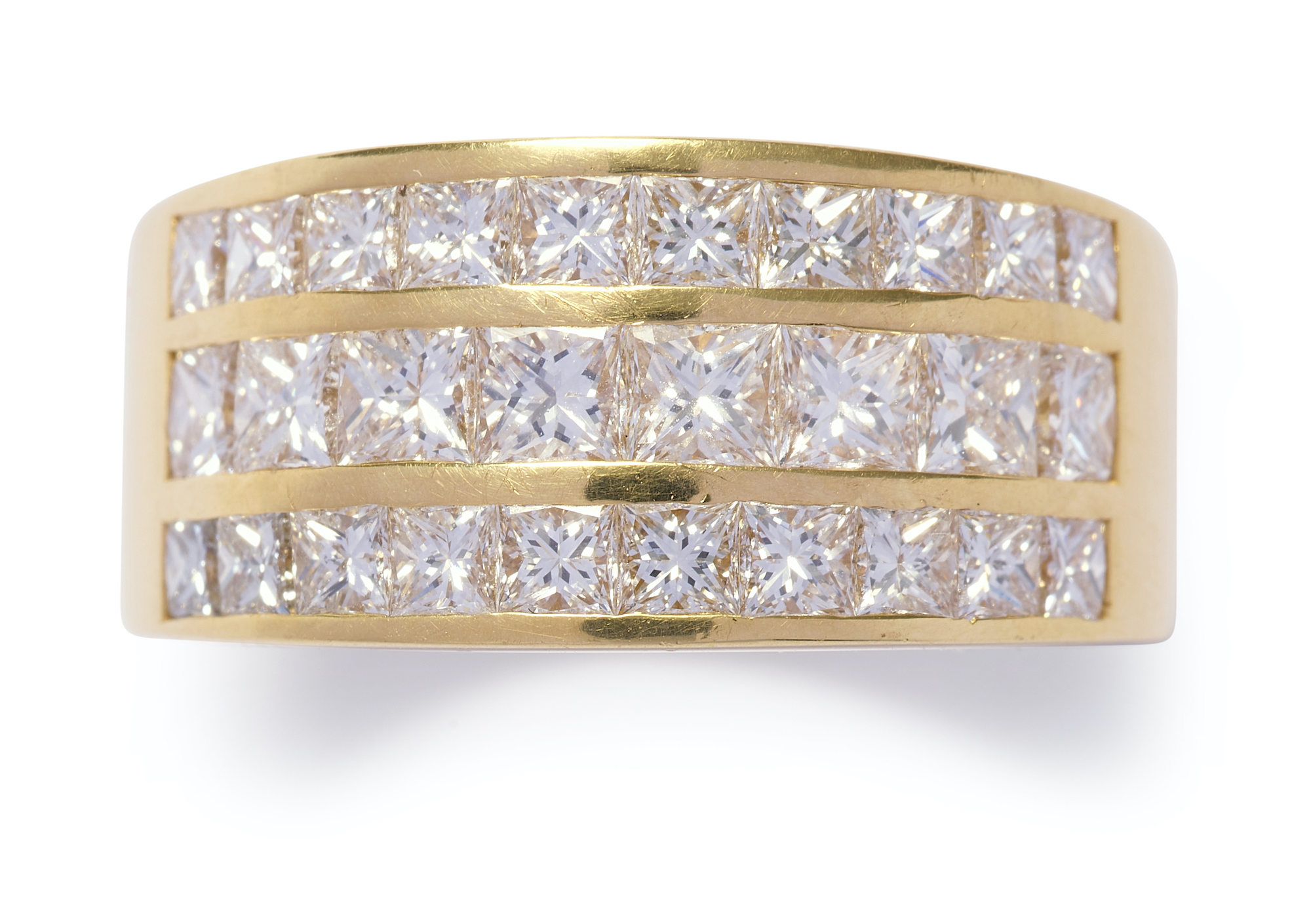 Centring three lines of channel-set princess-cut diamonds, size O1/2, signed Tiffany & Co., scratch numbered 16576960.