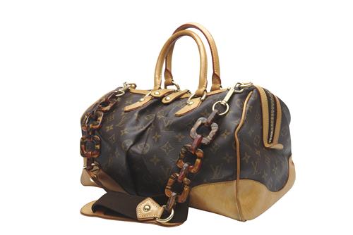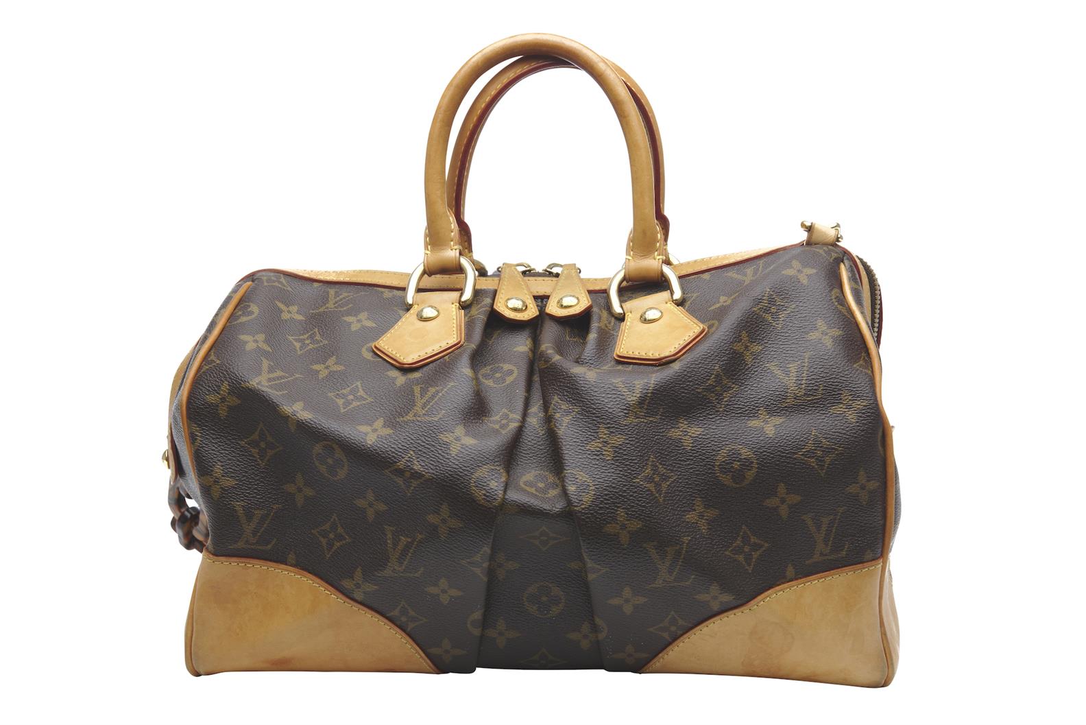 A SPECIAL ADDITION MONOGRAM STEPHEN BOSTON BAG BY LOUIS VUITTON-Styled in brown monogram coated canvas and tan leather trim with gold metal hardware and detachable shoulder strap, 34 x 24 x 23cm.