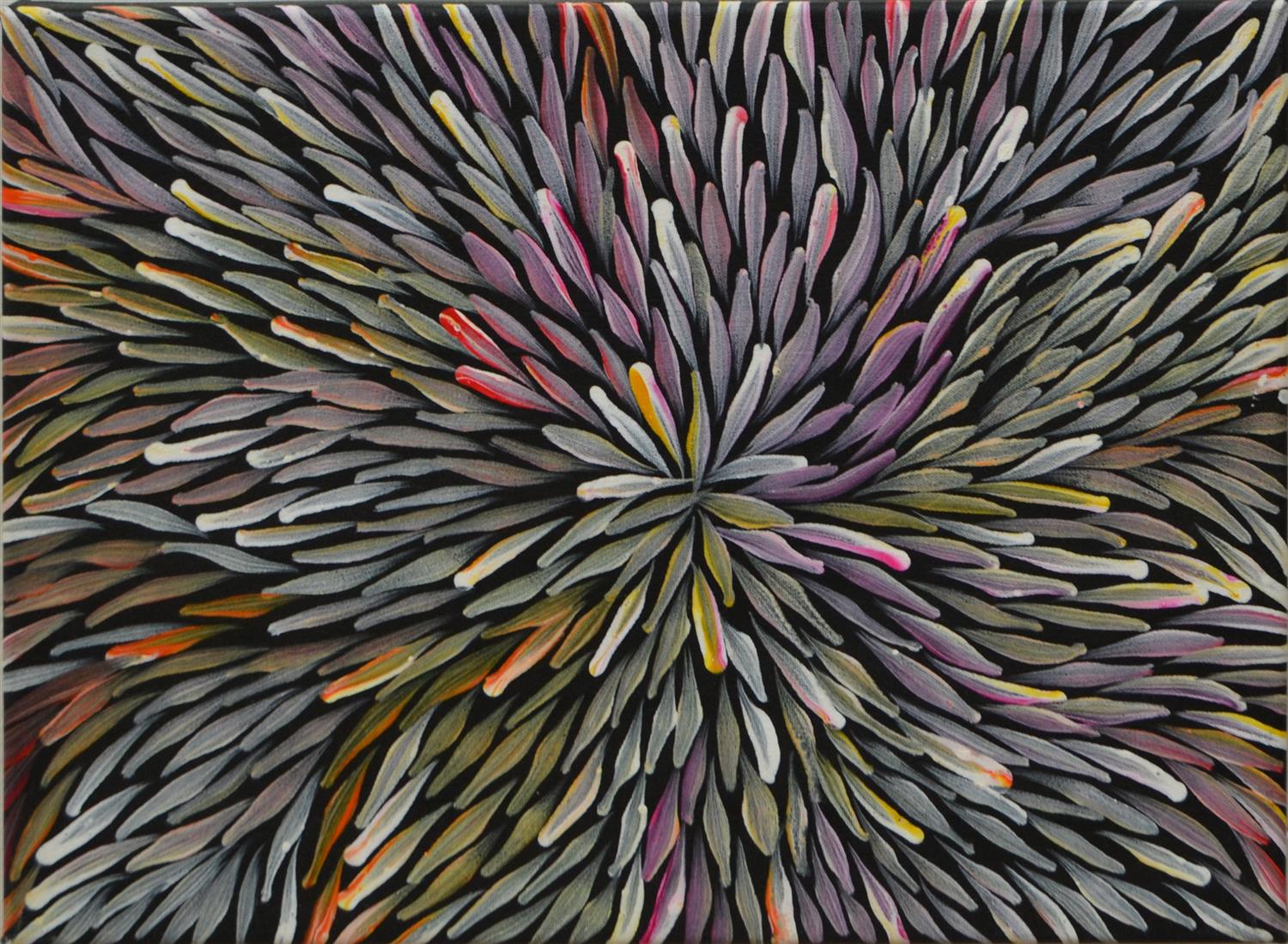 JEANNIE PETYARRE (PITJARA), UNTITLED (BUSH MEDICINE LEAVES), ACRYLIC ON CANVAS, 38.5 X 29.5CM, STRETCHED WITH NO ADDITIONAL FRAMING, CONDITION: VERY GOOD NO FAULTS, LEONARD JOEL DELIVERY SIZE: SMALL
