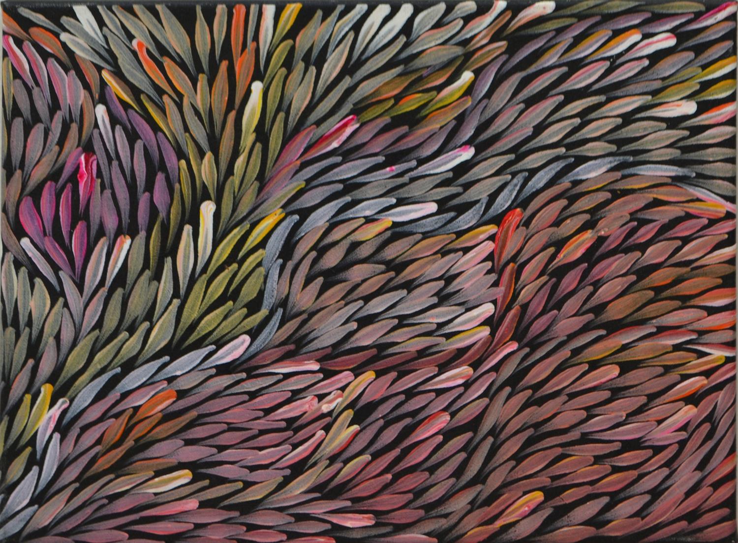 JEANNIE PETYARRE (PITJARA), UNTITLED (BUSH MEDICINE LEAVES), ACRYLIC ON CANVAS, 38.5 X 29.5CM, STRETCHED WITH NO ADDITIONAL FRAMING, CONDITION: VERY GOOD NO FAULTS, LEONARD JOEL DELIVERY SIZE: SMALL