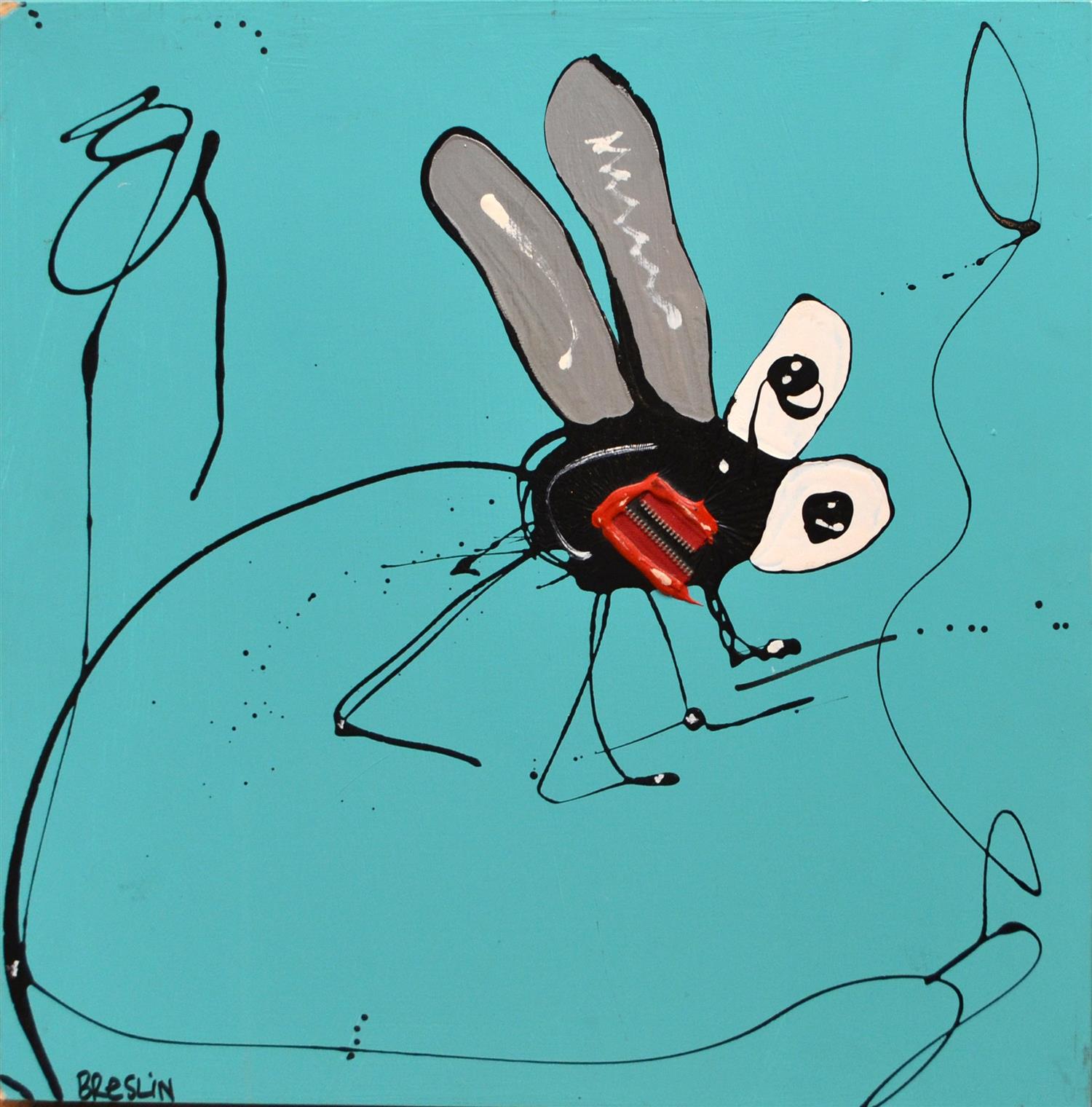 ANTHONY BRESLIN, FLY ON BLUE, MIXED MEDIA ON BOARD, 50 X 50 X 4.5CM, CONDITION: CHIP SEEN UPPER LEFT AND LOWER EDGE, MARKS SEEN LOWER RIGHT CORNER, WEAR TO ALL EDGES, LEONARD JOEL DELIVERY SIZE: SMALL