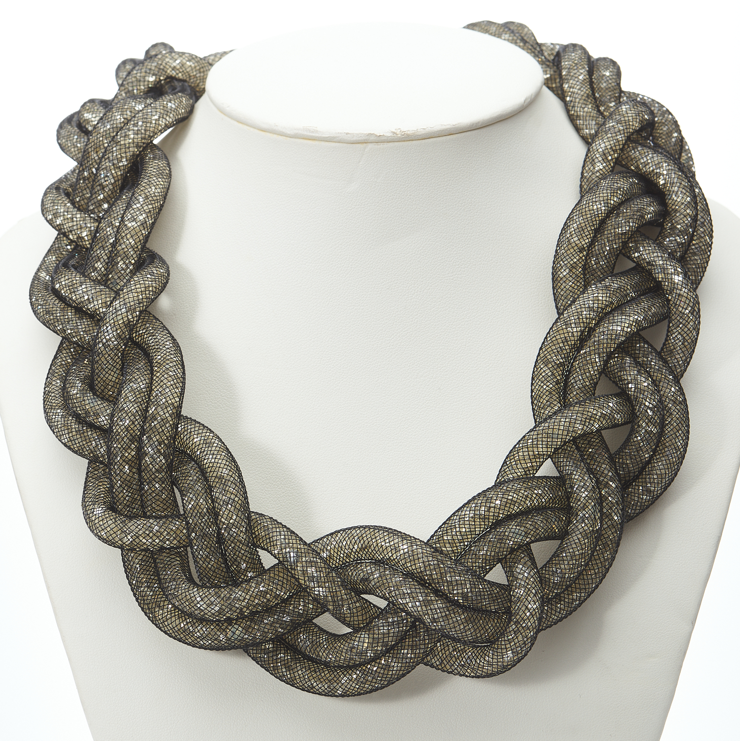 A LARGE BRAIDED COCKTAIL COSTUME NECKLACE, TO A MAGNETIC CLASP, TOTAL LENGTH 54CMS