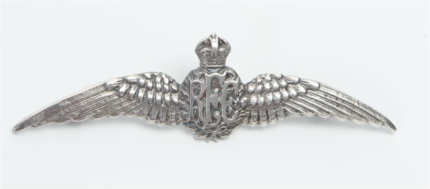 A LARGE ROYAL FLYING CORPS SWEETHEART BROOCH/OFFICER BADGE IN STERLING SILVER, WWI, LENGTH 9CMS, 16.3GMS