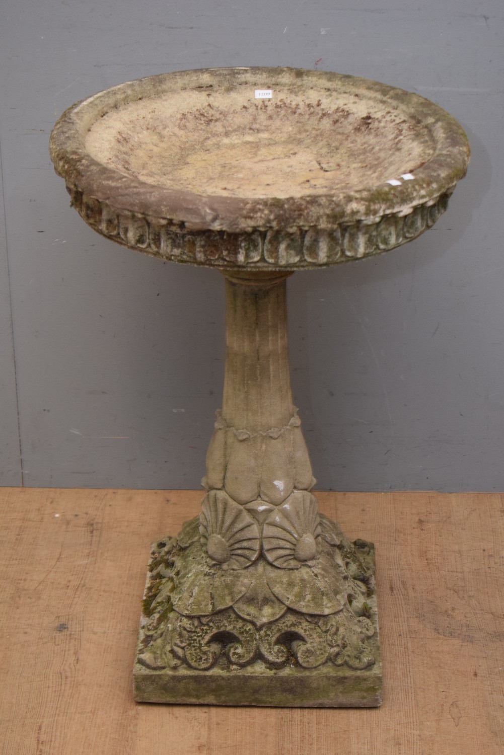 AN ART NOUVEAU STYLE CONCRETE BIRD BATH (87H X 60D CM) (PLEASE NOTE THIS HEAVY ITEM MUST BE REMOVED BY CARRIERS AT THE CUSTOMER'S EXPENSE. LEONARD JOEL STAFF CANNOT ASSIST CARRYING THIS ITEM) (X-LARGE ITEM)