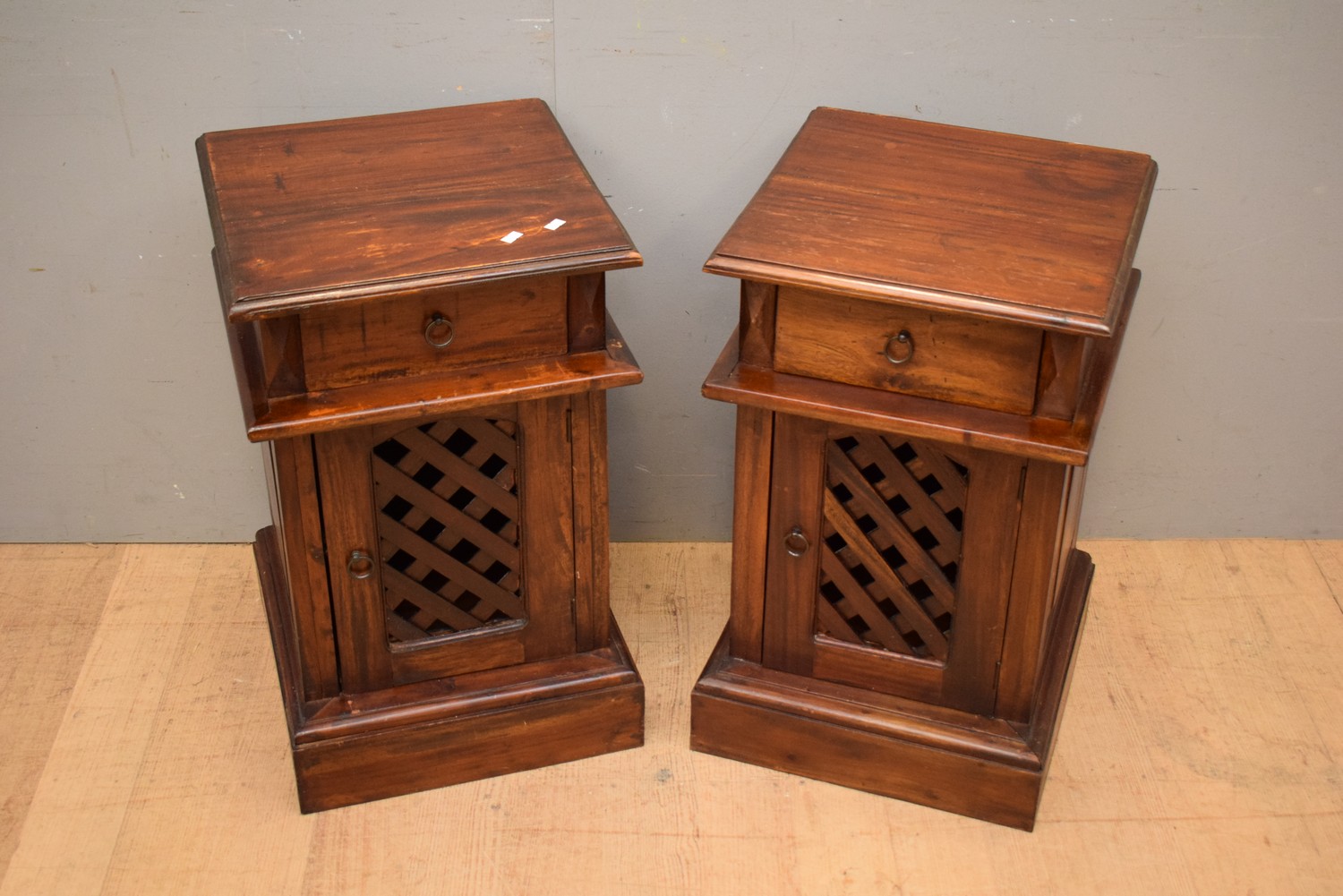 A PAIR OF MAHOGANY BEDSIDE TABLES (A/F) (65H x 40W x 40D CM) (LEONARD JOEL DELIVERY SIZE: MEDIUM)