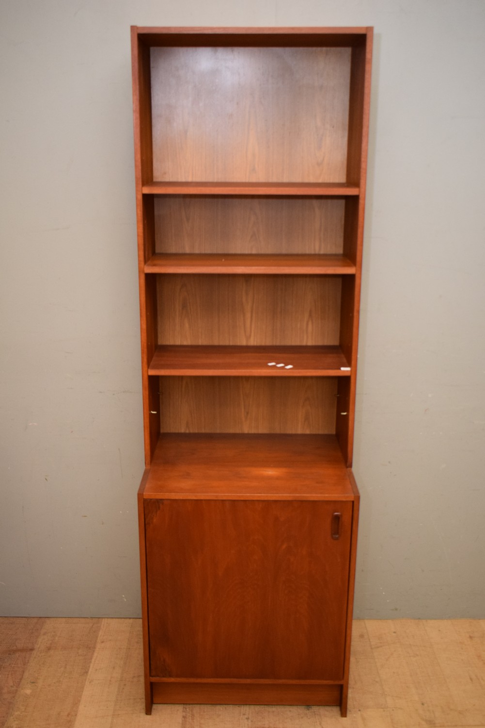 A MID-CENTURY BURGESS BOOKCASE (A/F - DAMGE TO VENEER) (197H x 62W x 46D CM) (PLEASE NOTE THIS HEAVY ITEM MUST BE REMOVED BY CARRIERS AT THE CUSTOMER'S EXPENSE. LEONARD JOEL STAFF CANNOT ASSIST CARRYING THIS ITEM)