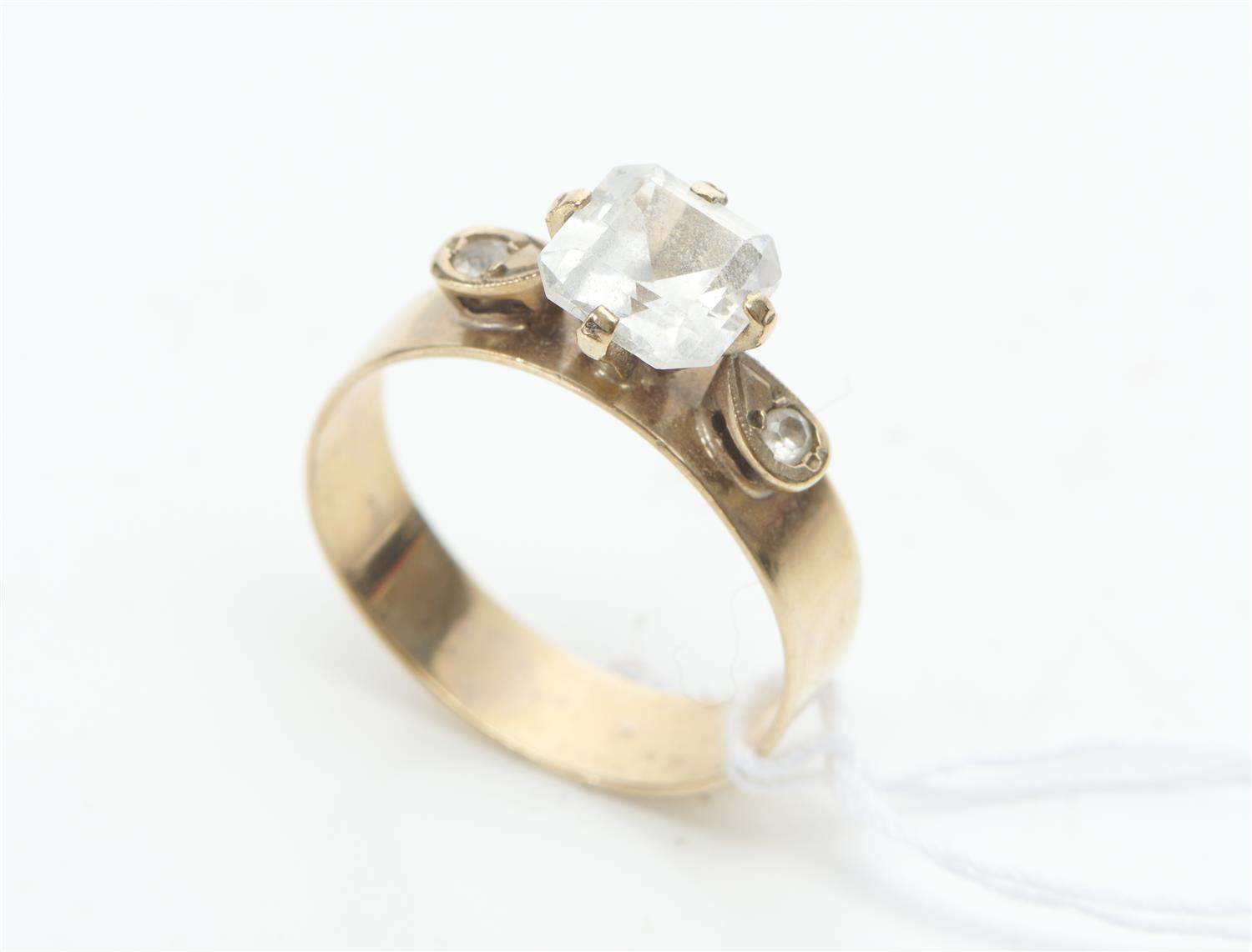 A WHITE STONE SET RING IN 9CT GOLD, SIZE P-Q, 2.94 GRAMS