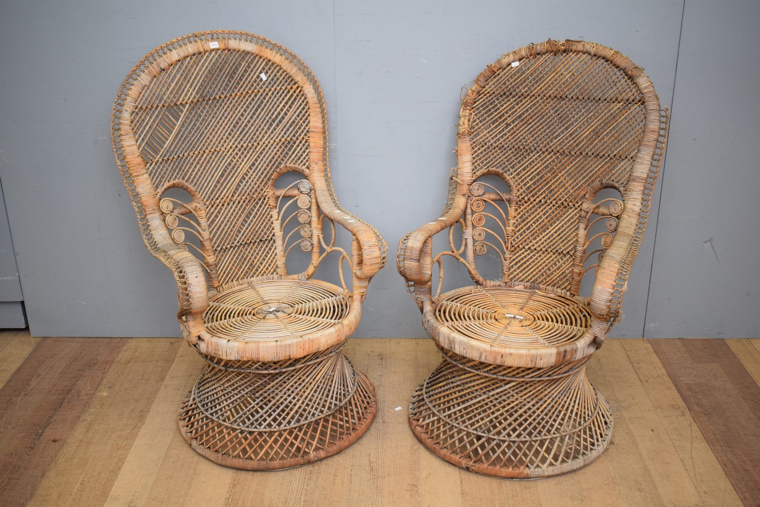 PAIR OF PEACOCK CHAIRS ( A/F TO CANE WORK) ( 114H X 70W X 56D CM) (LEONARD JOEL DELIVERY SIZE:MEDIUM)