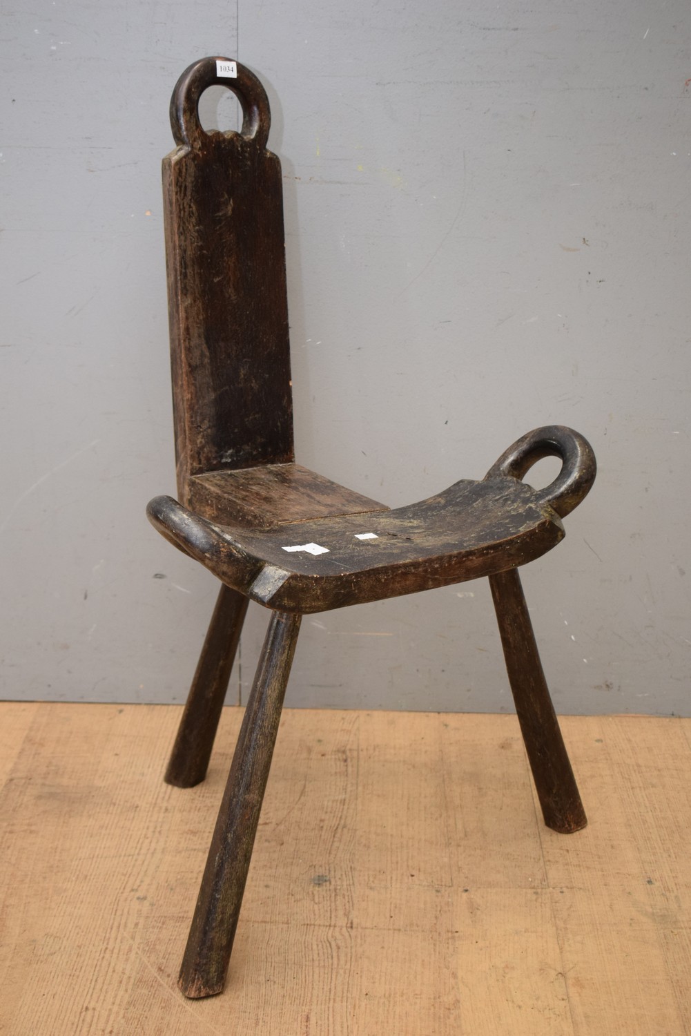 AN ANTIQUE TIMBER BIRTHING CHAIR ( 85H X 53W X 40D CM) (LEONARD JOEL DELIVERY SIZE:SMALL)